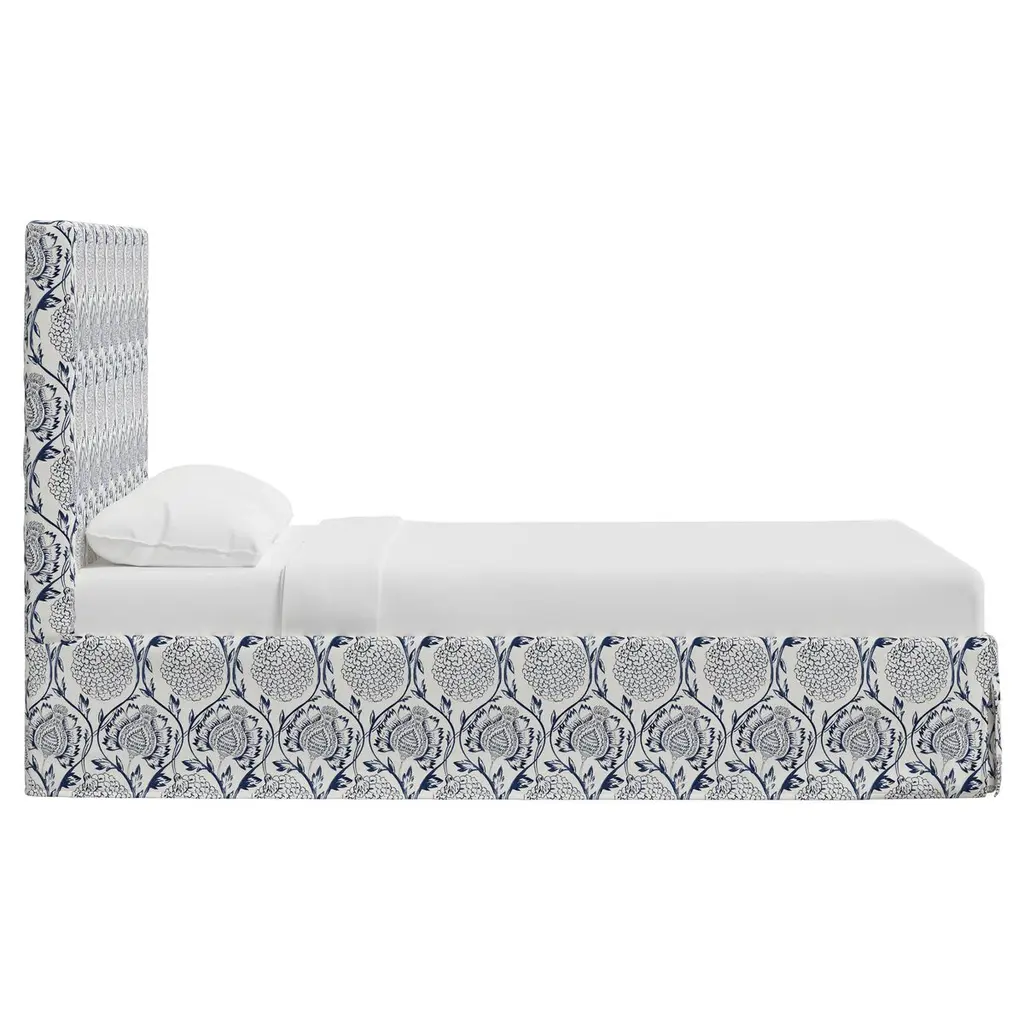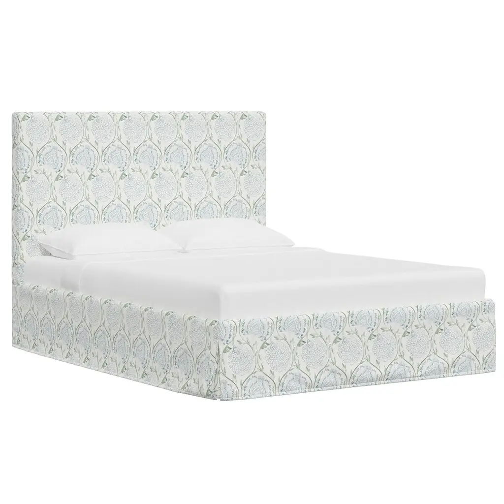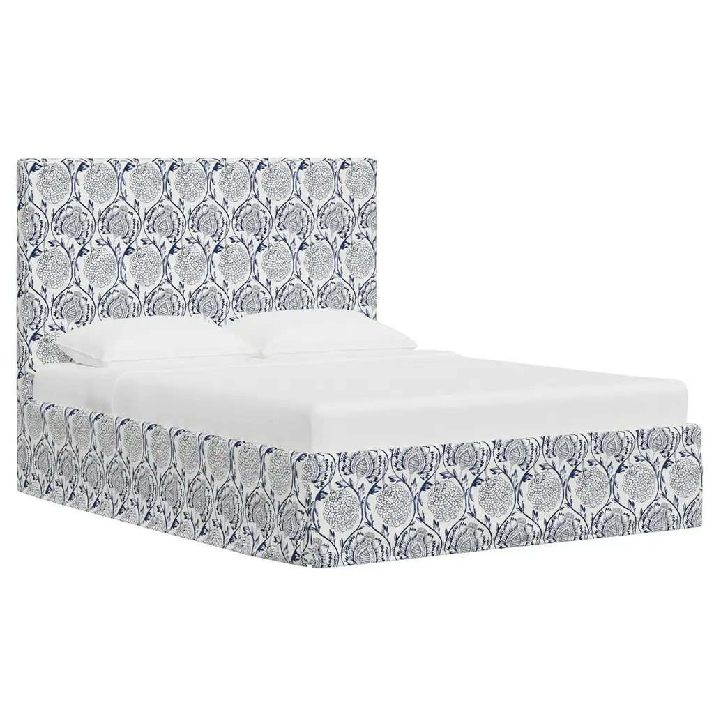 Exclusive to One Kings Lane: With its elegant simplicity, this bed frame boasts clean lines and a tall headboard, commanding attention in any room. The tailored slipcover is removable and upholstered in one of our most popular prints, the large scale Ranjit Floral pattern. A high padded headboard is ideal for resting against when reading or watching TV. Combining practicality with style, this slipcover bed is perfect for adding a signature touch to your space. Handcrafted in the USA, mattress and box spring required (suggested box spring height is 9”).