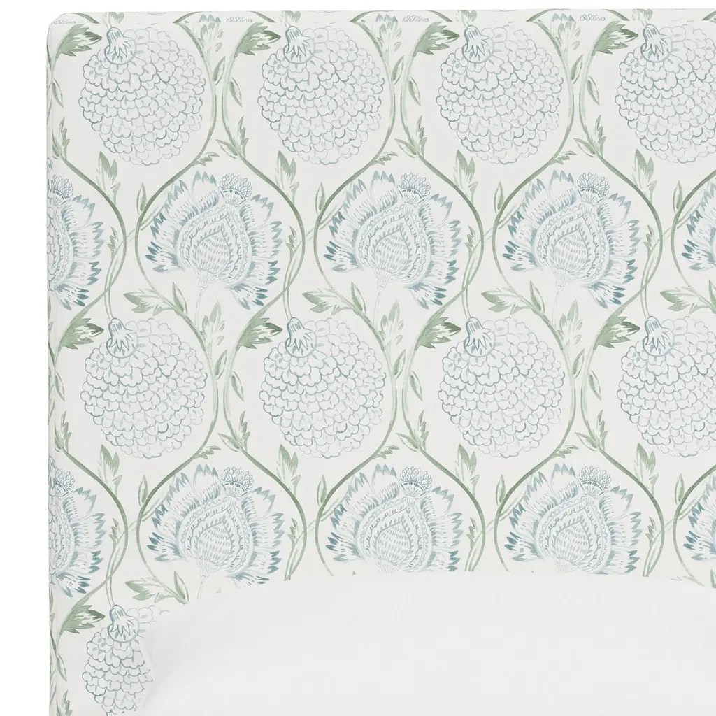 Exclusive to One Kings Lane: With its elegant simplicity, this bed frame boasts clean lines and a tall headboard, commanding attention in any room. The tailored slipcover is removable and upholstered in one of our most popular prints, the large scale Ranjit Floral pattern. A high padded headboard is ideal for resting against when reading or watching TV. Combining practicality with style, this slipcover bed is perfect for adding a signature touch to your space. Handcrafted in the USA, mattress and box spring required (suggested box spring height is 9”).