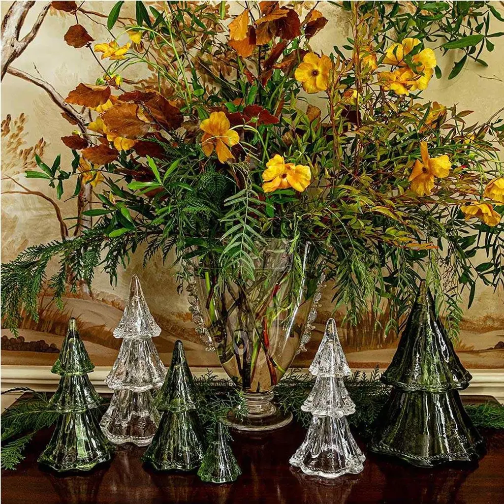 Elevate your holiday decor with the Juliska Berry & Thread Modern Classic Green Glass Trees, a stunning set that brings a touch of elegance and festive charm to any room. Shop now to add these exquisite, handcrafted glass accents from Kathy Kuo Home to your seasonal celebration.