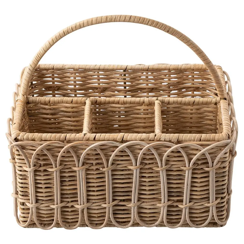Our Juliska Provence Coastal Beach Whitewash Rattan Silverware Caddy is the ultimate must-have for elegant al fresco dining during the summer months. Beautifully crafted from whitewashed rattan, this silverware caddy is a chic blend of form and function and also makes for a lovely gift!