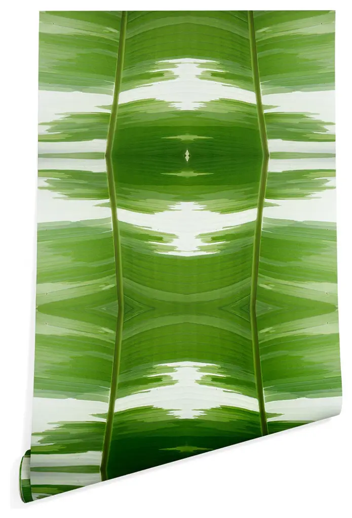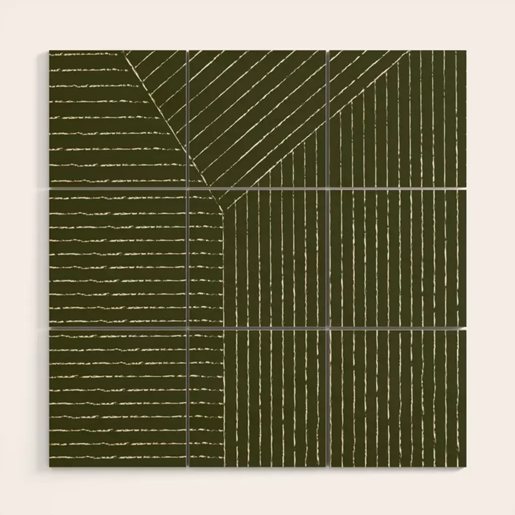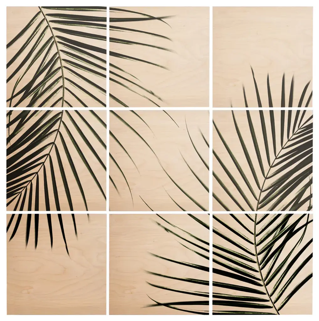 This unique boiserie decorative panel is a beautiful use of plaster relief, which gives the green side the look of being layers of leaves. In the middle lay two sections of hand-placed grey straw placed at an angle and that are joined in the center by a border in plaster and gold leaf.
