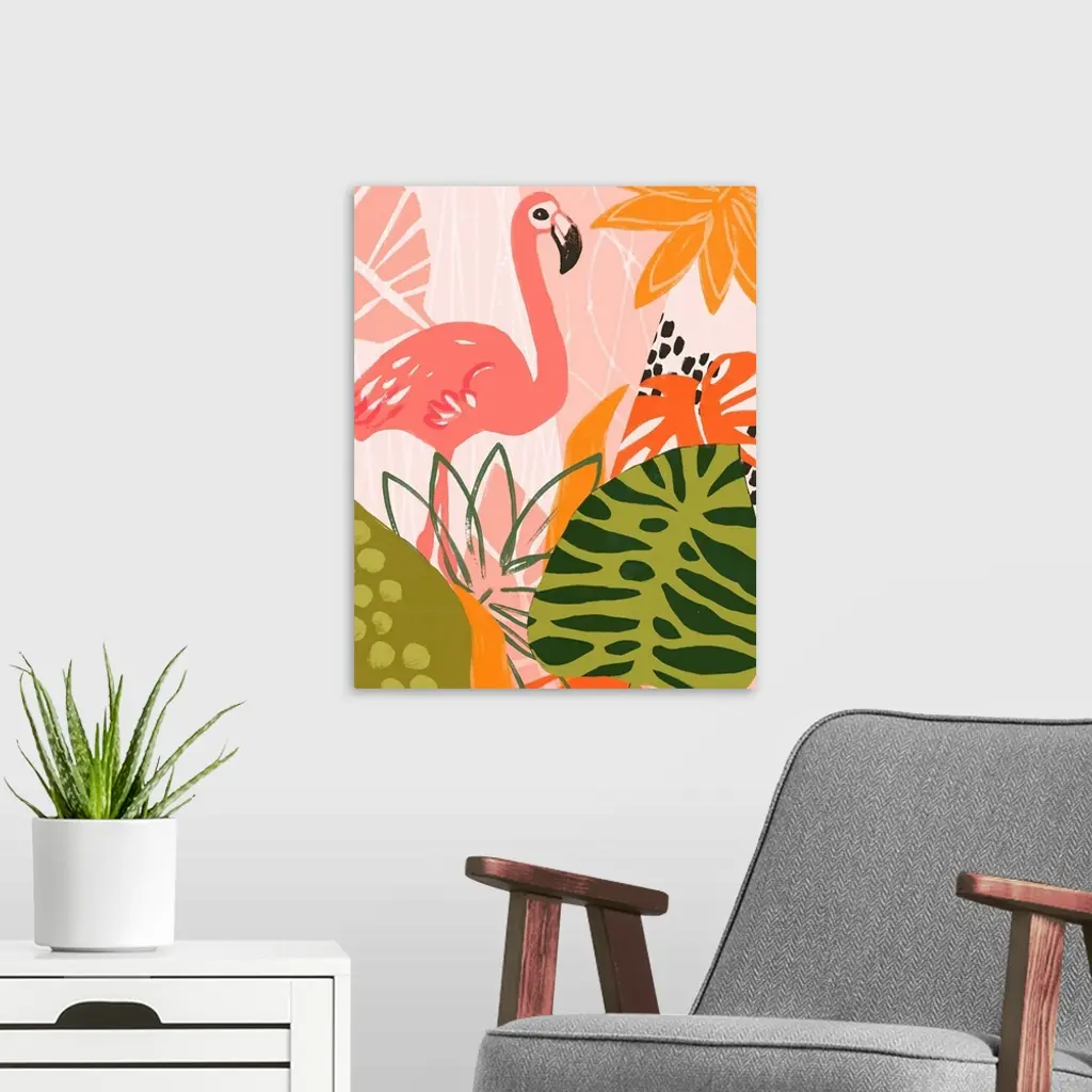 Jungle Flamingo II wall art for home and office decor. Discover canvas art prints, photos, mural, big canvas art and framed wall art in GreatBigCanvas.com's varied collections.