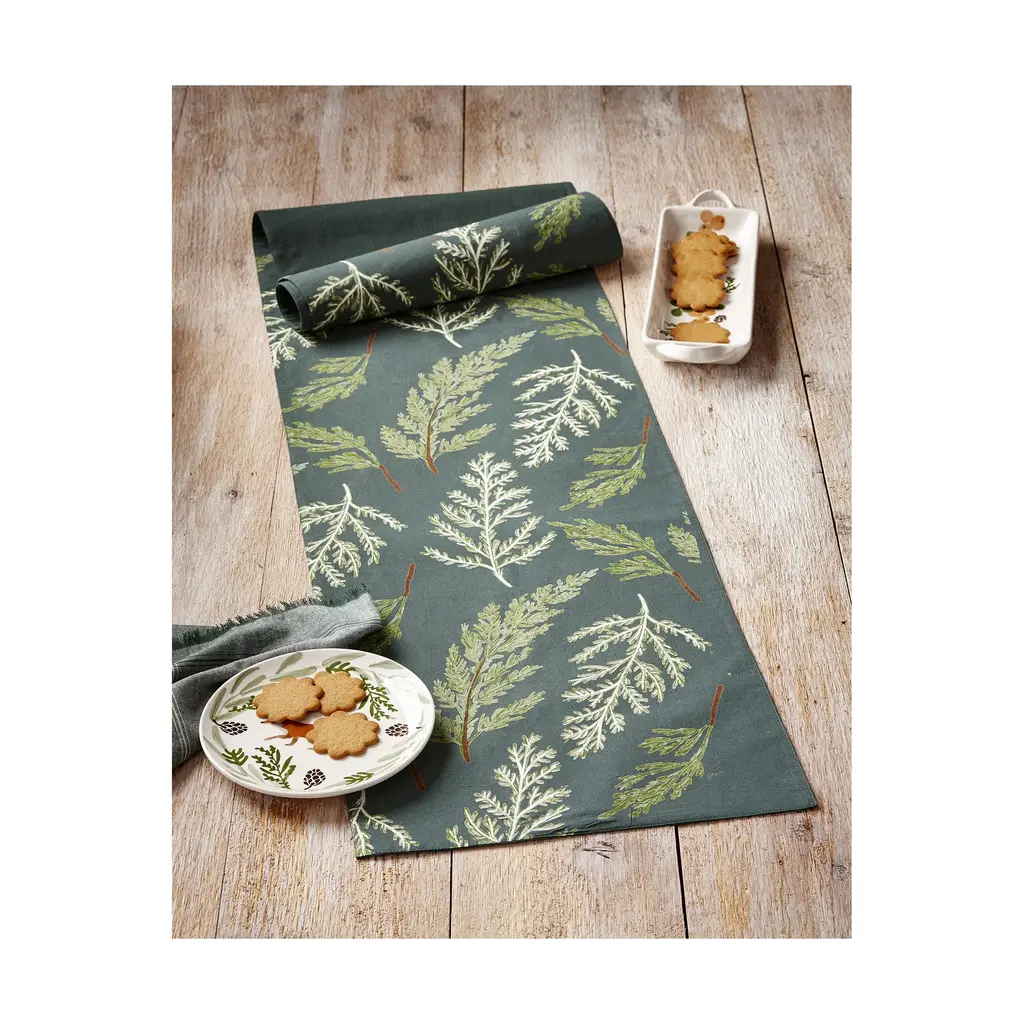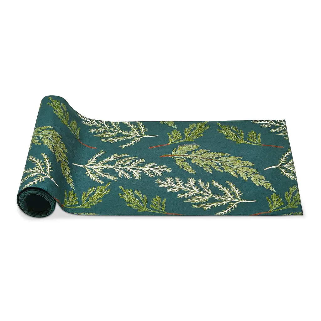 our juniper sprig runner is a stylish and functional addition to your tablescaping essentials this season. featuring 100% cotton construction with hand-screen printed design, this runner is the perfect complement to your home, from holiday to everyday. extremely versatile—relaxed enough for casual affairs, yet luxe and refined for more elegant soirees.our juniper sprig runner is a stylish and functional addition to your tablescaping essentials this seasonfeaturing 100% cotton construction with hand-screen printed design, this runner is the perfect complement to your holiday decorextremely versatile—relaxed enough for casual affairs, yet luxe and refined for more elegant soirees