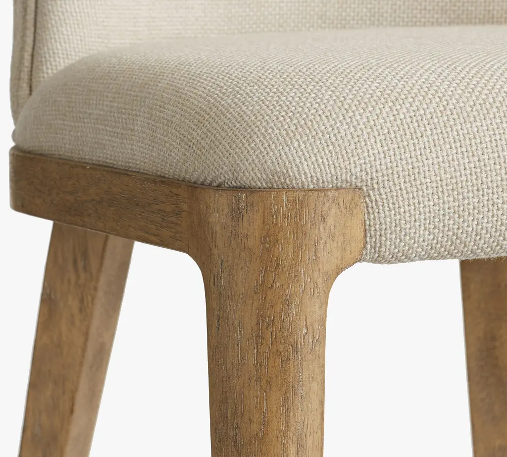 With a distinctly feminine form, Juniper has graceful curves that lend an elegant, modern look to any table. The tailored, scoop back seat has an inset look highlighted by the warmth of the tapered wooden legs.