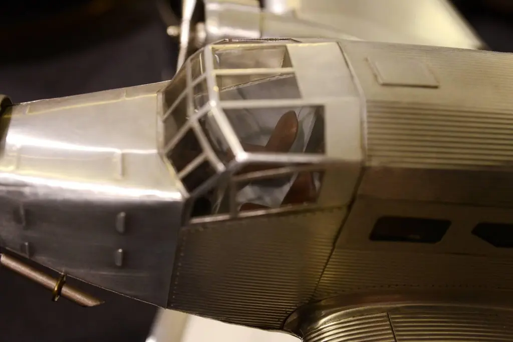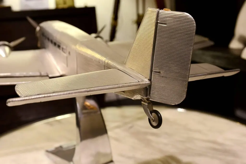 Reduced Model Junker JU-52 scale model,handcrafted in aluminium foil with engraved metal rivets, 1932.