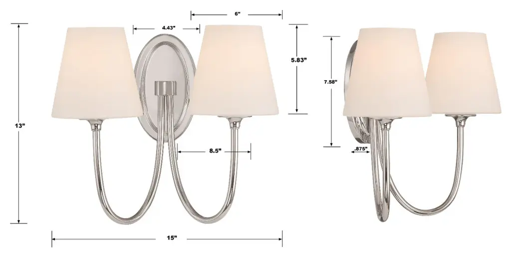 Simple and modern, the Juno wall mount is available in various finishes as one light or two light wall mounts. This striking accent light adds visual impact without taking too much space. Extending from a circular backplate, the slender arm is topped with a tapered glass shade.Number of Bulbs: 2Type of Bulb: E26 MediumBulb Wattage: 100Bulbs Included: N