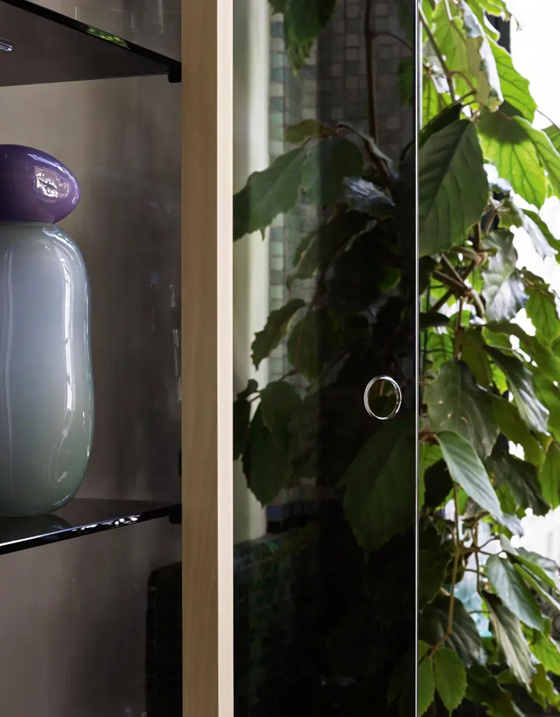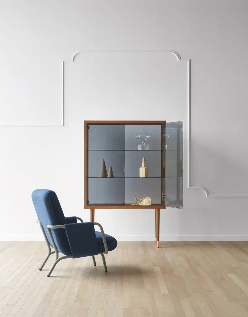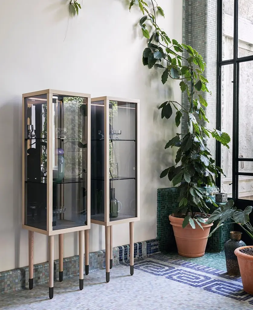 Juno is a container of stories. It is the attempt to reawaken the romantic side of the house, lost in the contemporary frenzy. It is the will to revive the concept of the glass cabinet, with tall legs, squared shapes, and neutral colours. It is the need to appease the sense of belonging to the past.Additional Information:Material: Wood, glassDimensions: 115 W x 45 D x 180 H cmStructure Finishing:• Europe Gray Glass• Ash• Ash Stained Walnut• Black AshDetails Finishing:• Lacquered Nero• CopperShelves Finishing:• Europe Gray GlassAvailable in other size option: 115 x 45 x 121, 45 x 45 x 180 cm