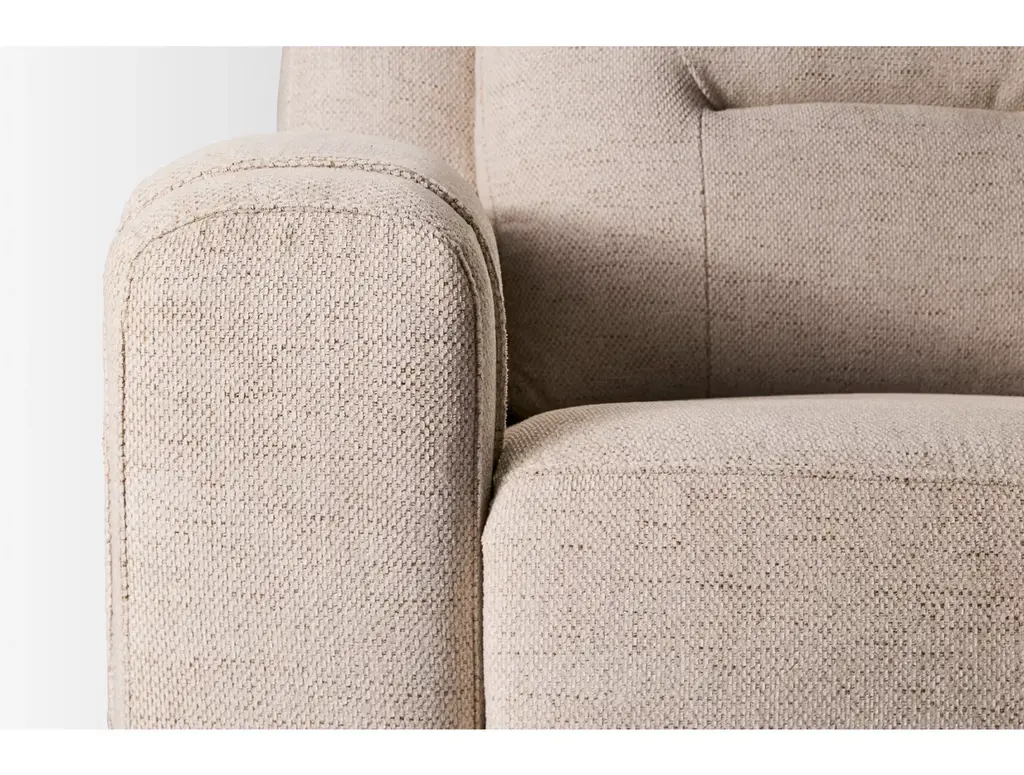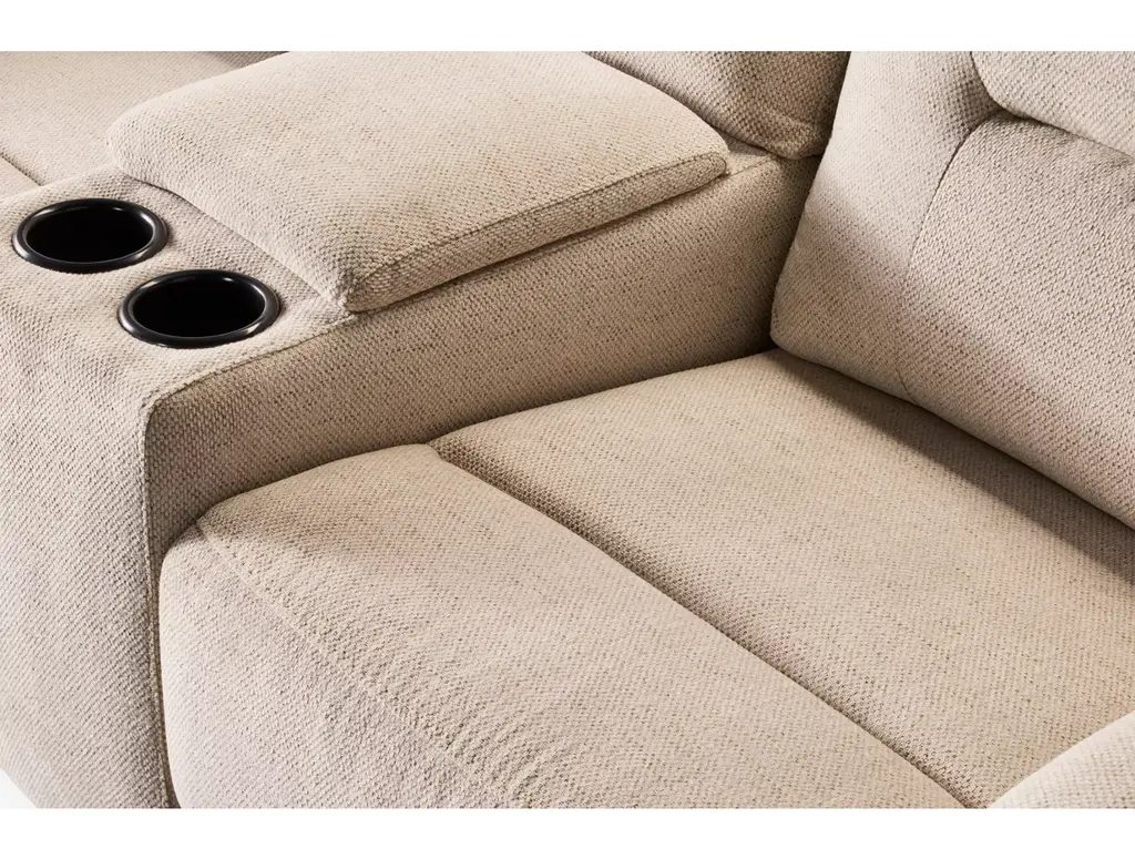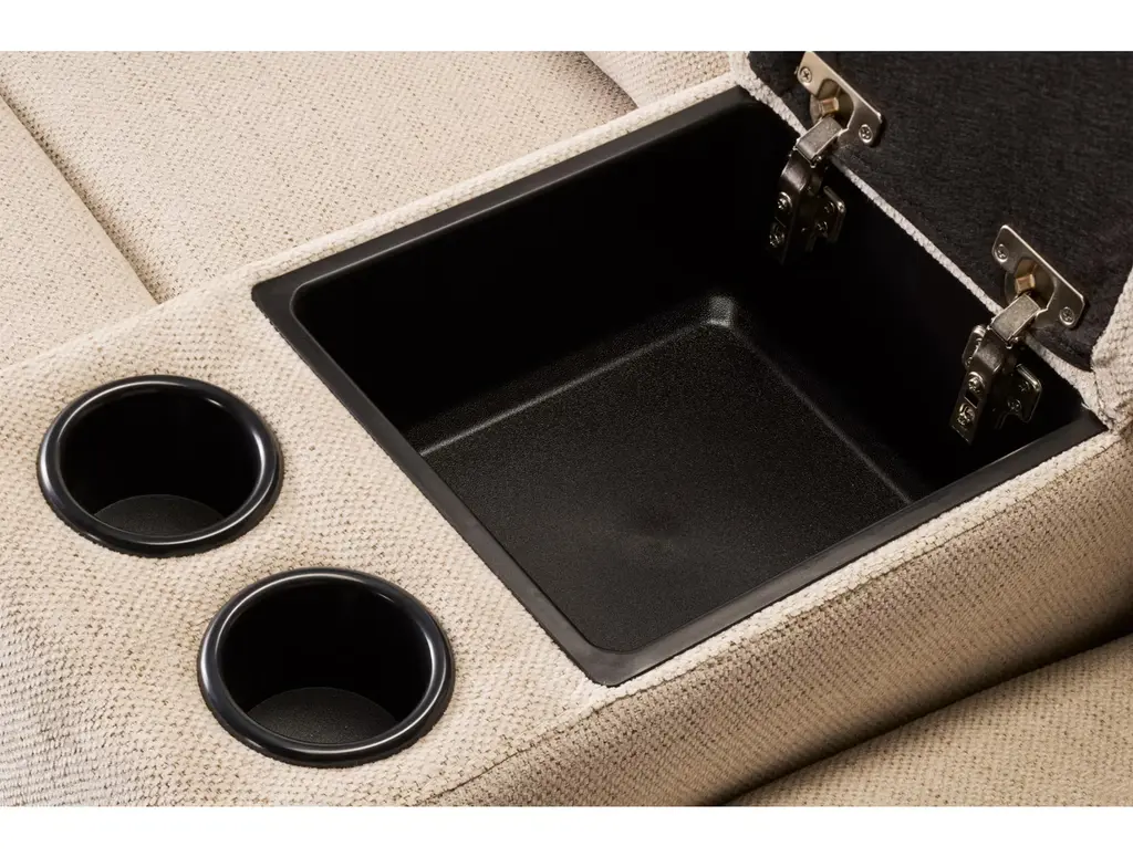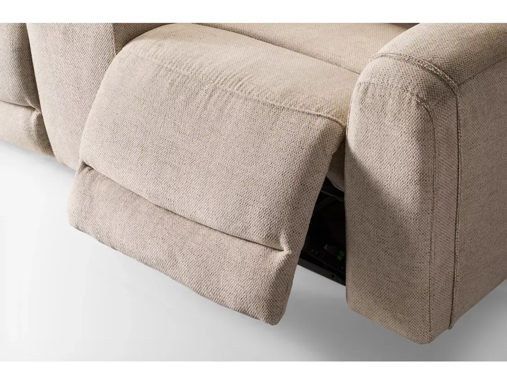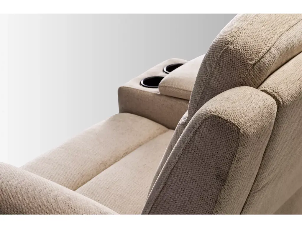 Relax in luxurious comfort with this Juno Power Loveseat Recliner with Power Headrest and Console from Kuka Furniture. This contemporary-style loveseat recliner features two recliners, soft upholstery with track arms, and tufted backs, seats, and footrests. View your favorite programs sitting upright or recline and take a nap at the touch of a button. A convenient USB port lets you charge your electronic device while you recline. The console includes a convenient storage compartment and two cup holders.