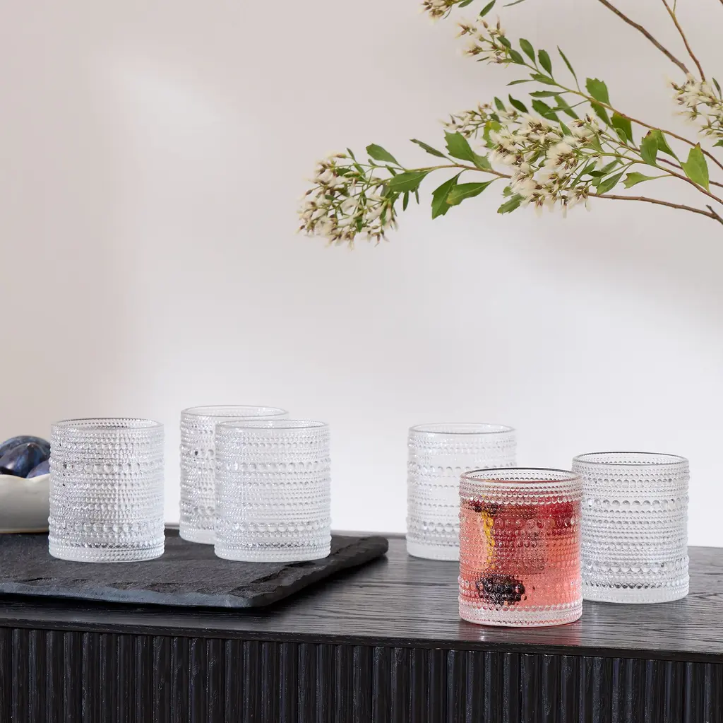 Its timeless design. The textured beading and vibrant coloring. Instantly elevates cocktails and water alike. They're dishwasher safe for easy clean-up.