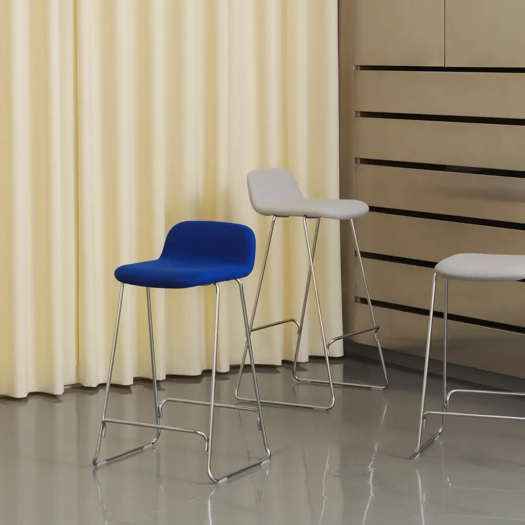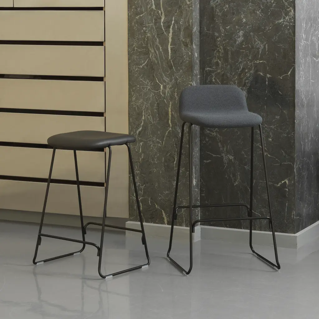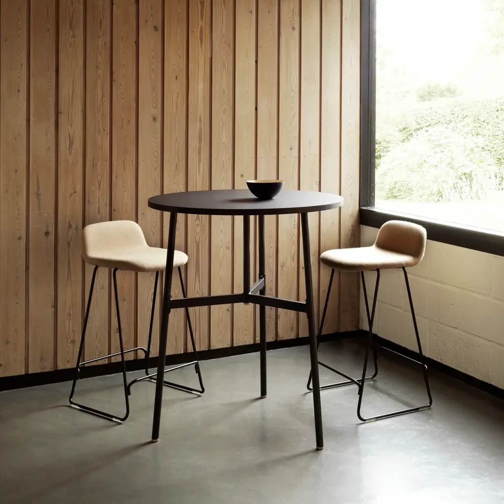 In a choice of bar or counter stool, design duo Iskos-Berlin bring the luxuriously customizing option of upholstery to their signature shell seating. Just’s sleek contours originate with a shell made of molded ash veneer, covered with PU foam and then clad in a fine textile or leather. The angular but airy base in black or chromed steel is discretely integrated with the molded shell to extend its suitability for numerous environments.