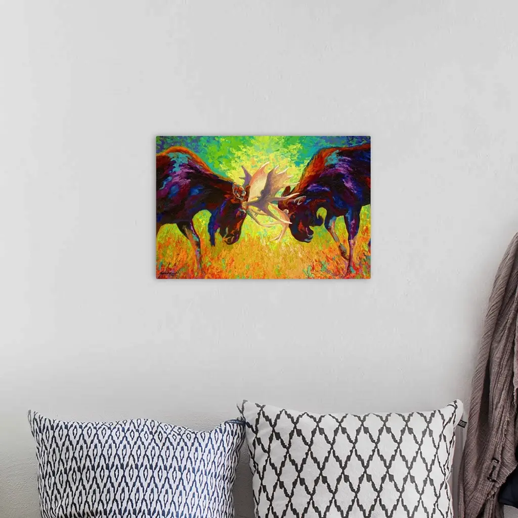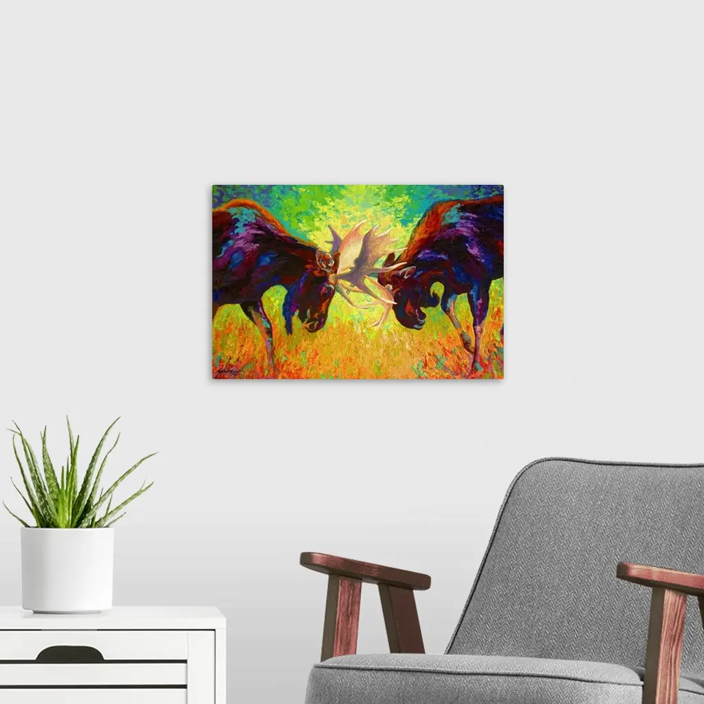 Just Sparring Moose wall art for home and office decor. Discover canvas art prints, photos, mural, big canvas art and framed wall art in GreatBigCanvas.com's varied collections.