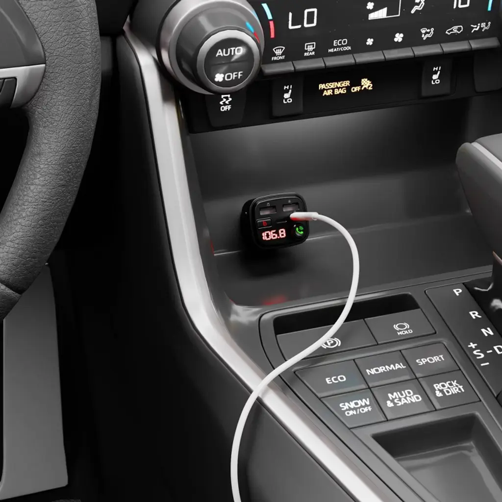 Enhance your driving experience with the Just Wireless Hands-Free FM Transmitter. Designed for convenience and safety, this transmitter allows you to take calls, stream music, and charge your devices—all without distraction.Connect your smartphone via Bluetooth® for wireless music streaming or use a USB memory drive to play your favorite tracks in MP3, WMA, WAV, APE, or FLAC formats. A built-in Bass Boost function provides fuller sound, while the noise-cancelling microphone ensures crystal-clear calls.Stay powered on the road with dual charging ports—an 18W USB-A and a 12W USB-C®—providing up to 30W combined output to charge multiple devices at once. The multi-function knob makes it simple to control tracks, adjust volume, or tune FM frequencies with ease.The compact plug-in design integrates seamlessly with your vehicle, and the bright LED display keeps you informed of frequency, playback, and battery voltage at a glance. With a Lifetime Warranty included, the Just Wireless FM Transmitter delivers reliability, safety, and performance you can trust every drive.