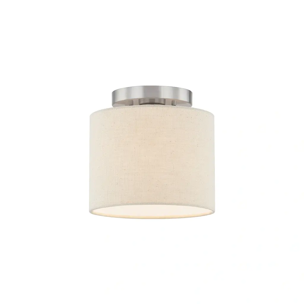 Justice Design Textile - Classic Drum Semi-Flush Light With Open Bottom - White Shade/brushed Nickel
