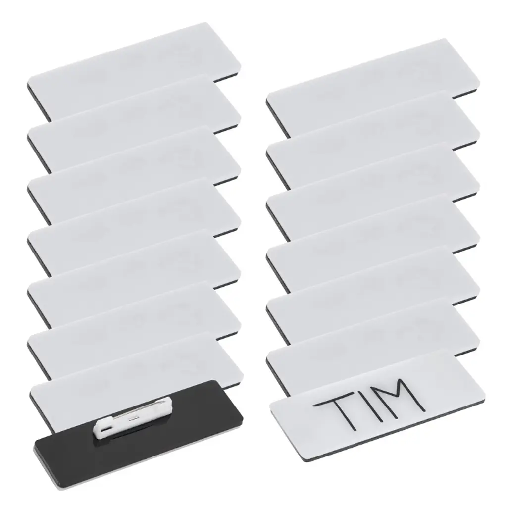 These blank name badges are the perfect solution for businesses looking to outfit their employees with professional and durable name tags. Each tag measures 3x1 inches and is made of an acrylic material that can withstand daily wear and tear. These blank name tags are ideal for retail stores, restaurants, offices, and classrooms. The pins easily attach to clothes, uniforms, or holders for easy identification of staff members. The tags can be customized with employee names, titles, or logos using the insert plate provided. The pins come in a bulk pack of 15, making them a cost-effective option for businesses with multiple employees. In restaurants, these blank nametag pin badges are especially helpful for waitresses and other employees who interact with customers regularly. It's important for customers to know who is serving them, and having a name tag can make the interaction more personal and professional. In classrooms, these name tags are useful for both students and teachers, ensuring that everyone knows each other's names and roles.