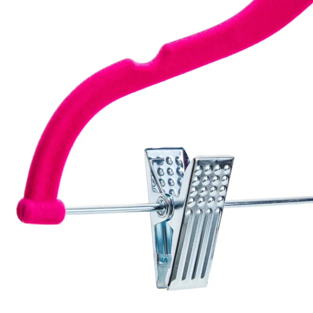 Juvale 24 Pack Hot Pink Velvet Hangers, Space Saving Kids Hangers With Clips For Closet, Ultra Thin, Nonslip, 12", Ages 3-14