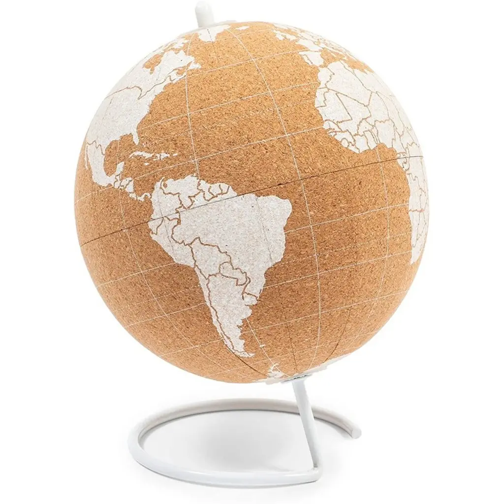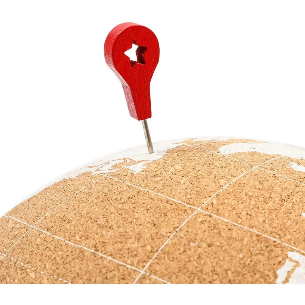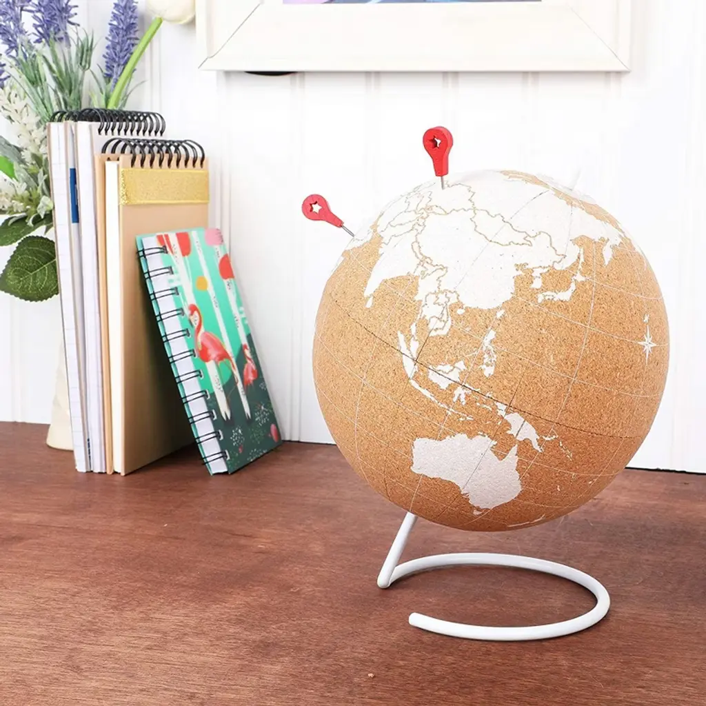 Display and pinpoint your favorite experiences, destinations, or inspire and explore new destinations and locations with this mini cork globe world map with push pins. The desktop globe looks great on a shelf or table stand and adds charm to your home, classroom, and office. The cork globe measures approximately 5.9 x 7.87 inches.
