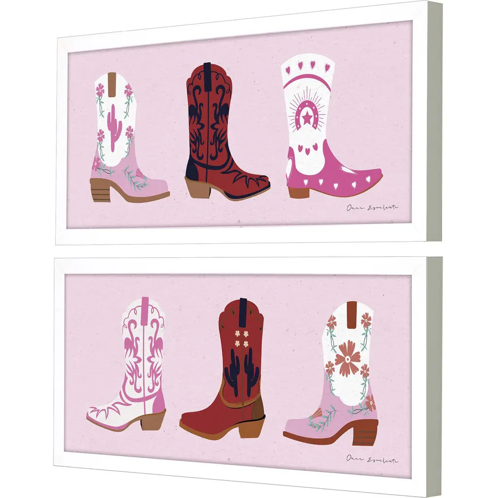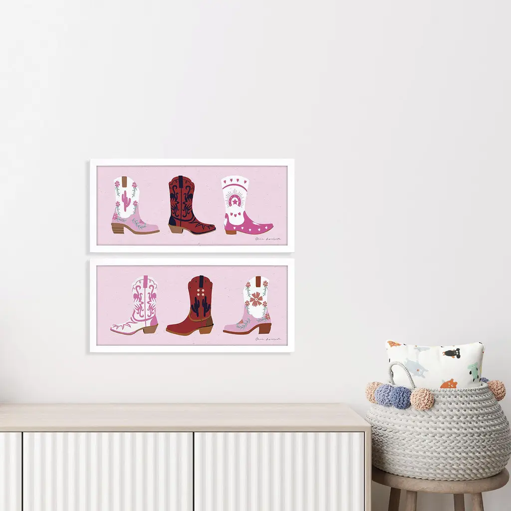Girly cowboy boots are perfect for cowgirls of any age Framed in a modern flat white moulding.