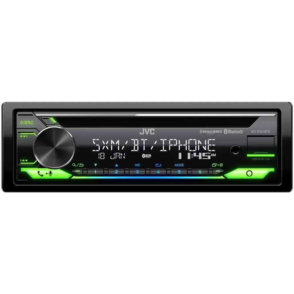 JVC KD-TD91BTS - CD Receiver w/ Bluetooth, USB, Amazon Alexa + Included SirusXM SXV300V1 Satellite Radio Tuner- This bundle includes JVC KD-TD91BTS - CD Receiver w/ Bluetooth, USB, Amazon Alexa and SiriusXM SXV300v1 Connect Vehicle Tuner Kit for Satellite Radio. JVC KD-TD91BTS - CD Receiver featuring Bluetooth, Front USB, AUX, Amazon Alexa, SirusXM Ready (Requires Tuner) Amazon Alexa Compatible 2-Zone Variable Color Illumination Ready for SiriusXM Radio - (Optional SiriusXM Tuner Required, Sold Separately) Bluetooth Wireless Technology (Wired-Mic Included) Bluetooth Hands-Free Profile 1.7 Audio Streaming & Control (A2DP, AVRCP) JVC Streaming DJ (5 BT-Audio Connection) iPod/iPhone Control (Check Manual for Compatibility) Android Music Playback (via Bluetooth) FLAC Playback 96kHz/24bit (USB) MP3,WMA (CD/USB) WAV,AAC Compatible (USB) 13-Band Graphic EQ with 11 Preset EQ Settings Time Alignment - Space Enhancement - Sound Lift K2 Technology for Enhanced Digital Sound Quality Loudness Control (Off/Low/High) + Bass Boost Control SiriusXM SXV300v1 Vehicle Tuner Kit for Satellite Radio Connect, control and enjoy all the wonders of satellite radio on the sly. The compact SXV300 tuner is truly plug-and-play with compatible car stereos and installs easily and discreetly behind the dash for a fully integrated look. Connect, control and enjoy SiriusXM though the vehicle's in-dash audio system; no special translators or cable adapters are needed. Compact size hides discreetly behind the dash for a fully integrated look. Single interface cable connection to SiriusXM-Ready car stereo simplifies installation. Pause, Rewind and Replay up to 60 minutes of live Satellite Radio.* Automatically start songs from the beginning on your favorite channels with TuneStart.* Use TuneMix to hear a mix of songs from your favorite channel.*