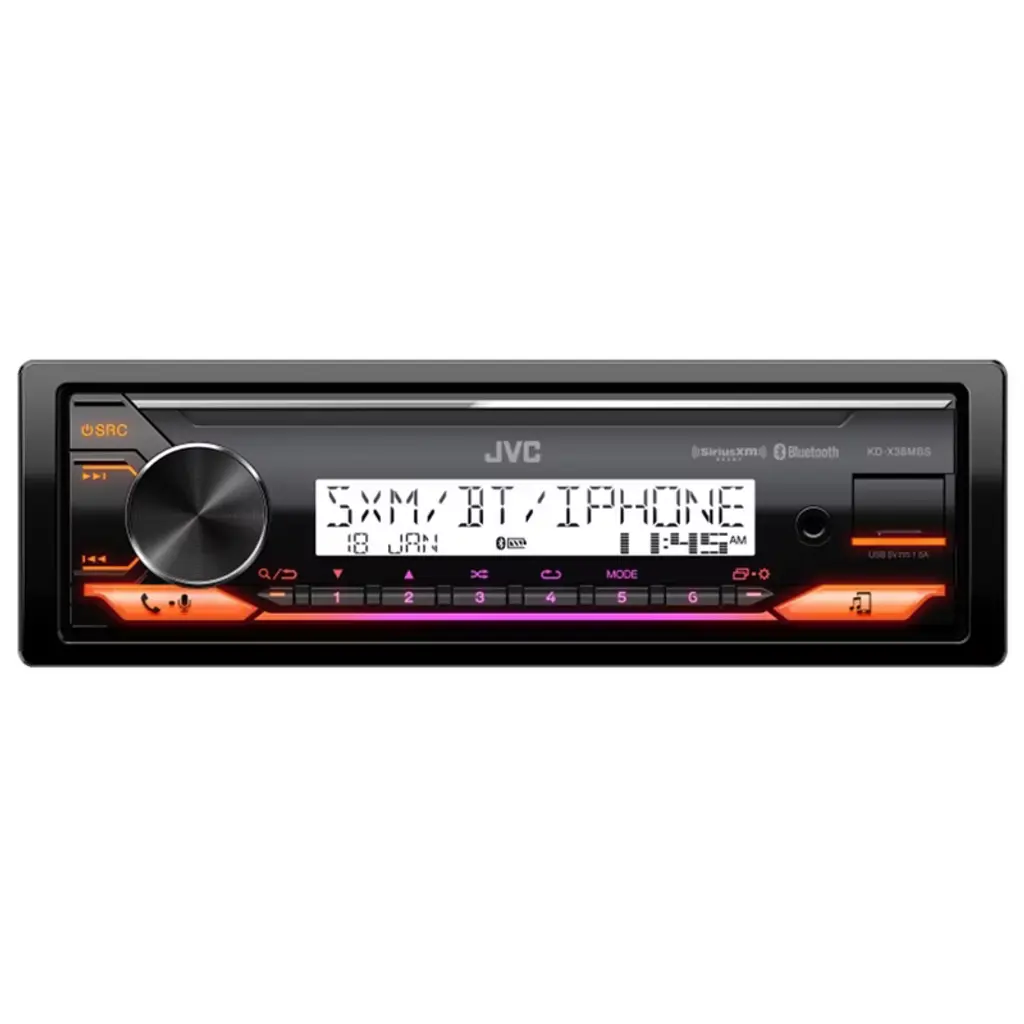 JVC KD-X38MBS Marine Digital Media Receiver with Bluetooth, USB, SiriusXM Ready, Conformal Coated PCB and 2 JVC Marine Speakers 6.5" 2-way White (Pair). JVC’s marine and motor sports receivers and amplifiers feature compact size for versatile installation even in tight spaces. Conformal coated main PCBs (printed circuit boards) offer additional protection against moisture and condensation from damaging the product. Display Display Type: 2-Line VA LCD Display LCD Color: Black Key Color: Variable Color Music Sync. Effect: Yes Spanish Text Display Compatible: Yes French Text Display Compatible: Yes Auto Dimmer: Yes Brightness Control: Yes Media Playback MP3 Compatible with Tag: USB WMA Compatible with Tag: USB WAV Compatible with Tag: USB AAC Compatible with Tag: USB FLAC Compatible with Tag: USB Bluetooth Control Built-in Bluetooth[1]: Yes (Ver 4.2, Wired-Mic included) Hands Free Call: Yes (HFP 1.7.1) 2 Phones Full-Time Connection: Yes Audio Streaming & Control (A2DP, AVRCP): Yes (AVRCP 1.6.1) Supported Audio Formats: AAC / SBC 5 BT-Audio Connection [JVC Streaming DJ]: Yes Voice Dialing (voice recognition compatible mobile phone required): Yes Phone Book Access Profile (PBAP): Yes iPhone & Android Automatic Pairing: Yes (iPhone only) Low Battery Information: Yes JVC Marine Speakers 6.5" 2-way WhiteSensitivity: 86 dB RMS Power Range : 50 Watts Peak Power Handling: 150 Watts Frequency response: 60-20k Hz Diameter: 6.5 Inch Color: White