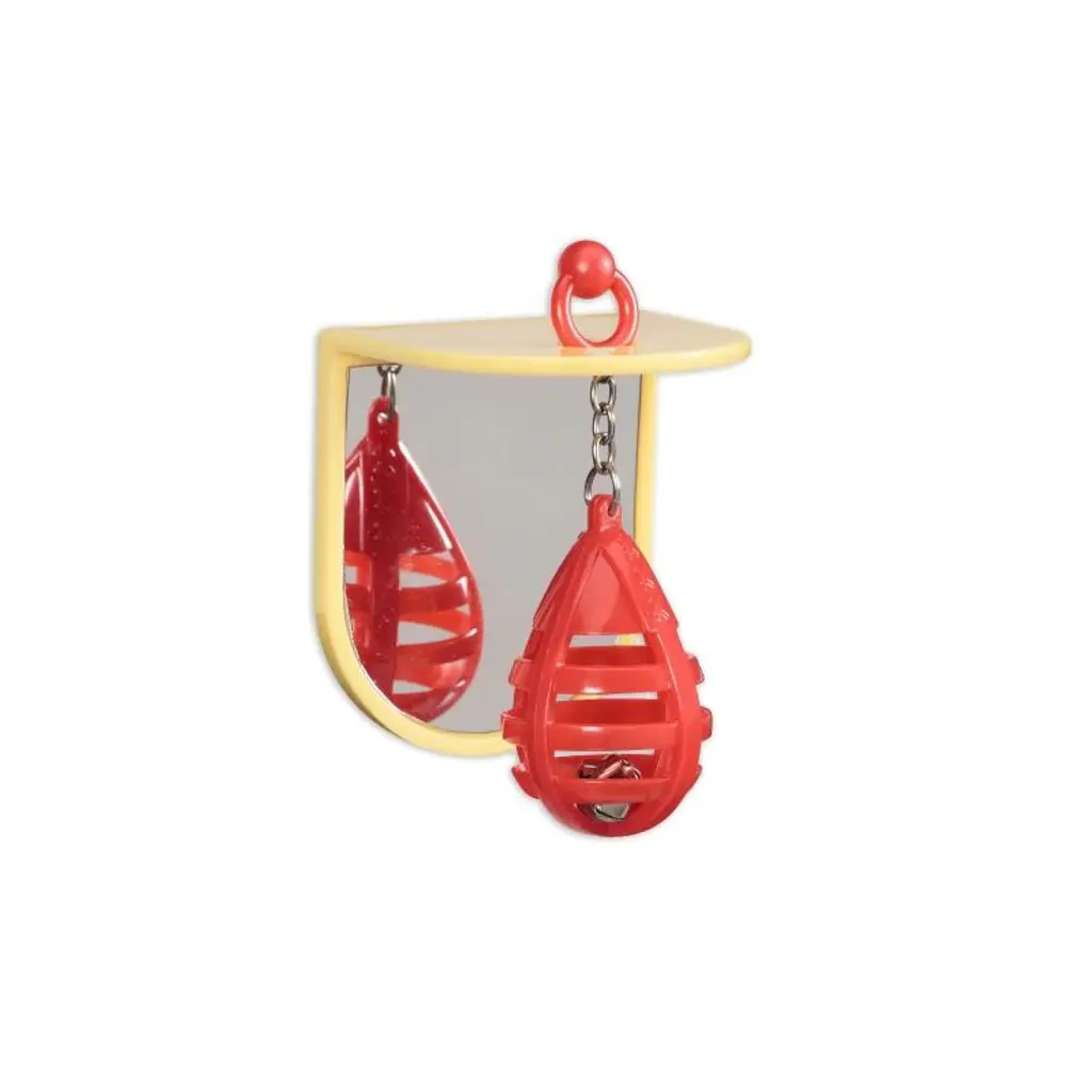 JW Pet Punching Bag Plastic Bird Toy is toy for parakeets, cockatiels and similar sized birds. This punching bad toy allows your bird to peck or grab the toy and be rewarded with a bell sound. This jingling toy also comes with a large mirror to engage senses and keep your bird mentally healthy!