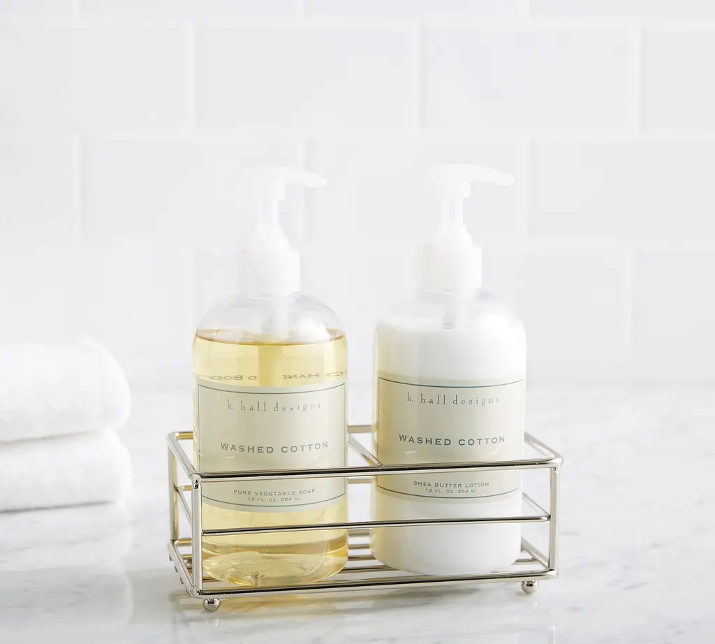 K. Hall Washed Cotton Soap & Lotion Caddy Set