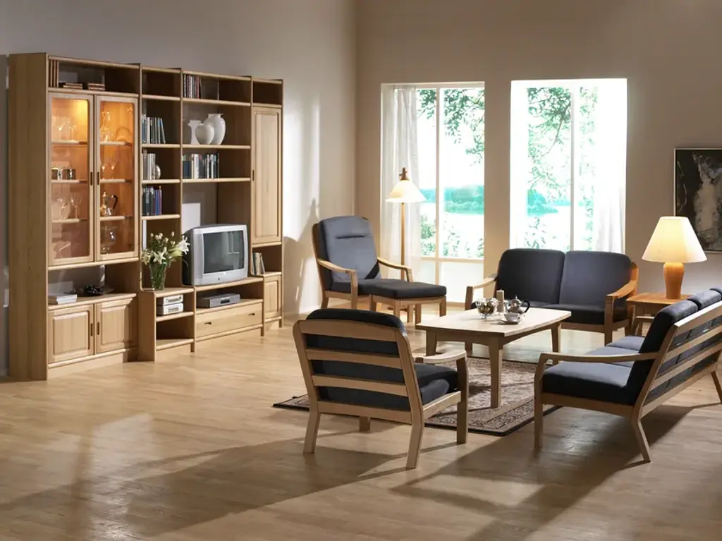 K4 wall unit combination by Dyrlund. Dimensions: 313 x 35,5/49,5 x 234 cm.