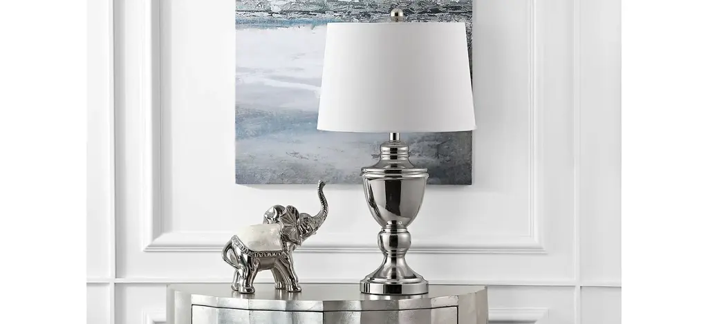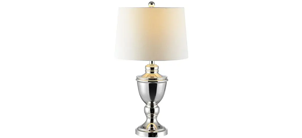 Designed after a medieval wine goblet, the Kaden Table Lamp, while inspired by traditional forms, is thoroughly modern. Kaden's classic silhouette is updated with a striking nickel finish and white linen barrel shade, casting a chic shine in any interior.