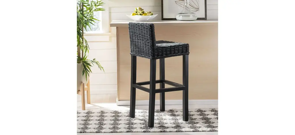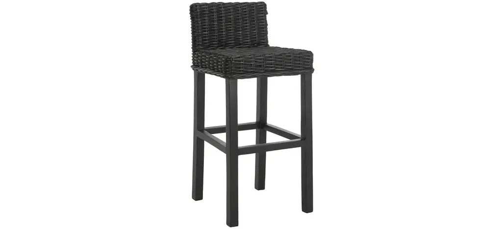 Equally at home in country, coastal, or traditional interiors, the Kai Bar Stool offers a taste of the islands with its black split rattan seat and back. With its sturdy mango wood straight legged charm, it provides functional fashion for your indoor seating at bar, counter, or pub table.