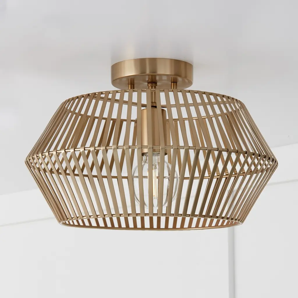 Modern metal meets elegant angles in the Kaiya Semi-Flush. The open design invites visual intrigue, while the Matte Brass or Matte Black finish creates show-stopping style.