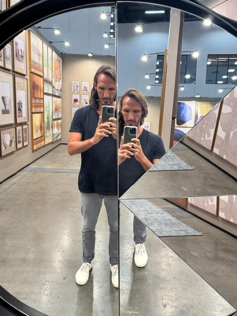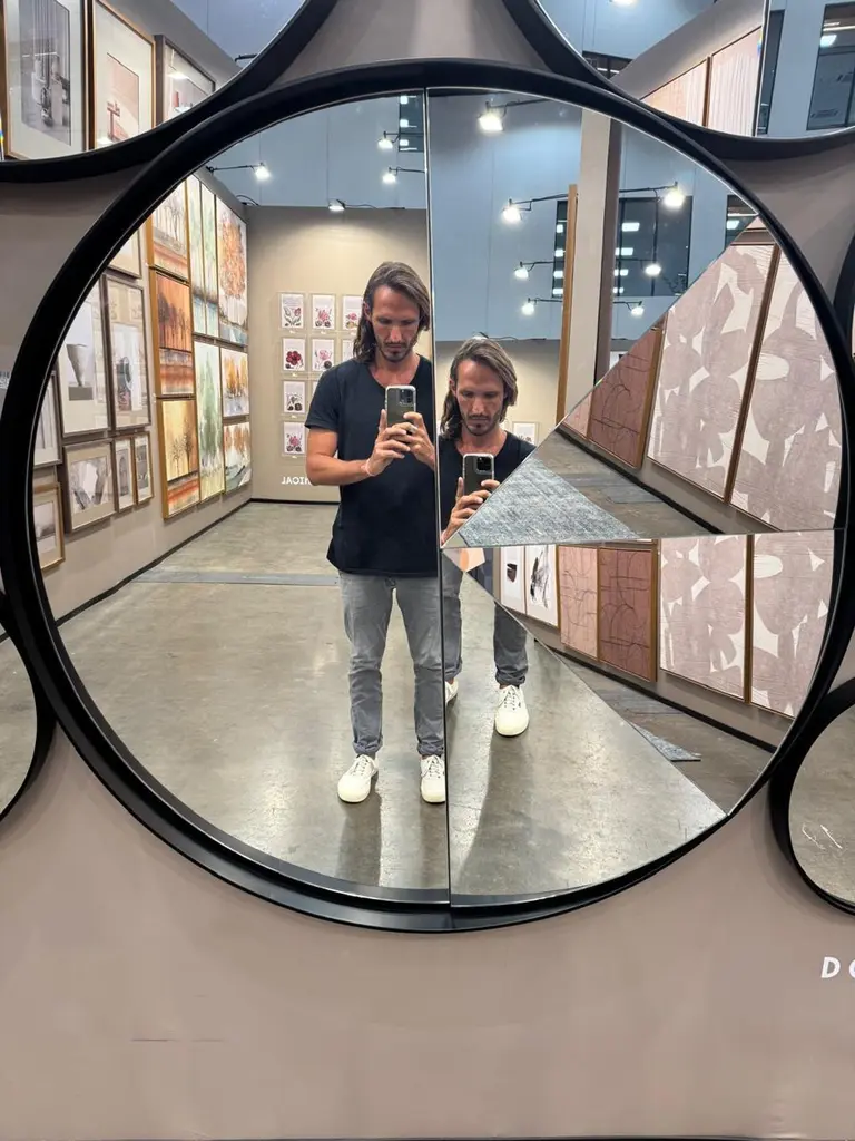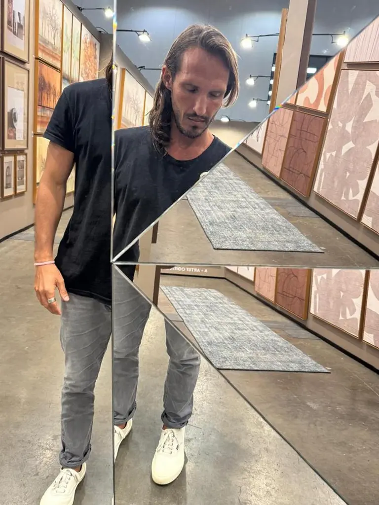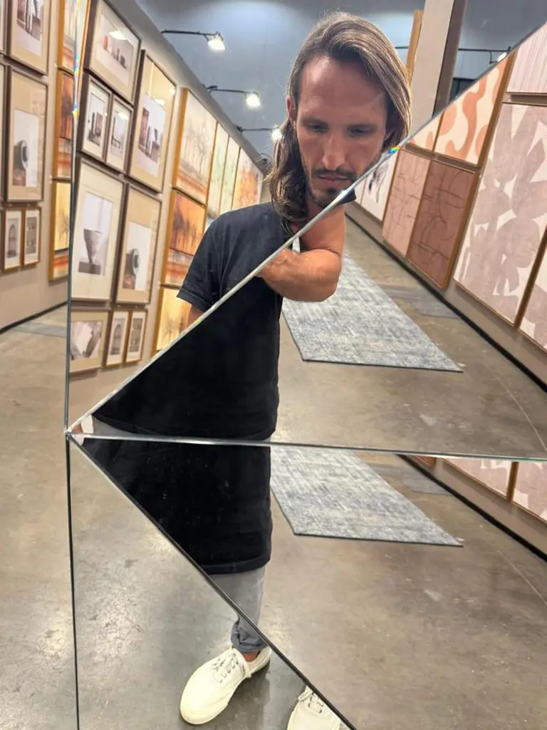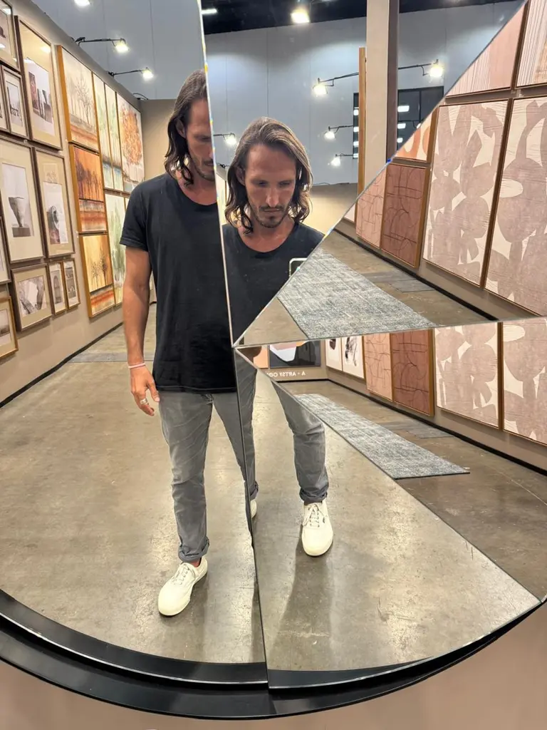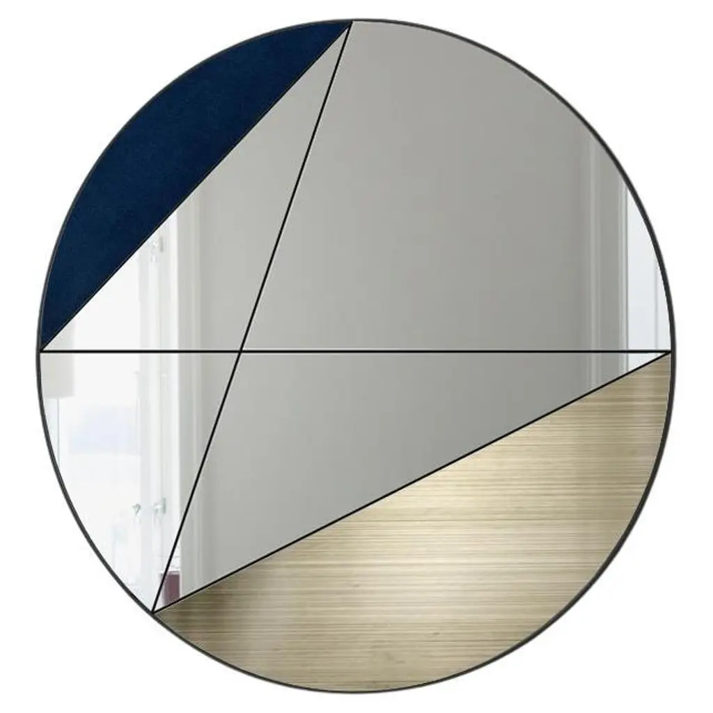 Multifaceted Kaleidoscope mirror with different inclined planes.Inspired by the plural perspective of space, it results in an innovative reflection of different parts of the room.Diameter 100cm