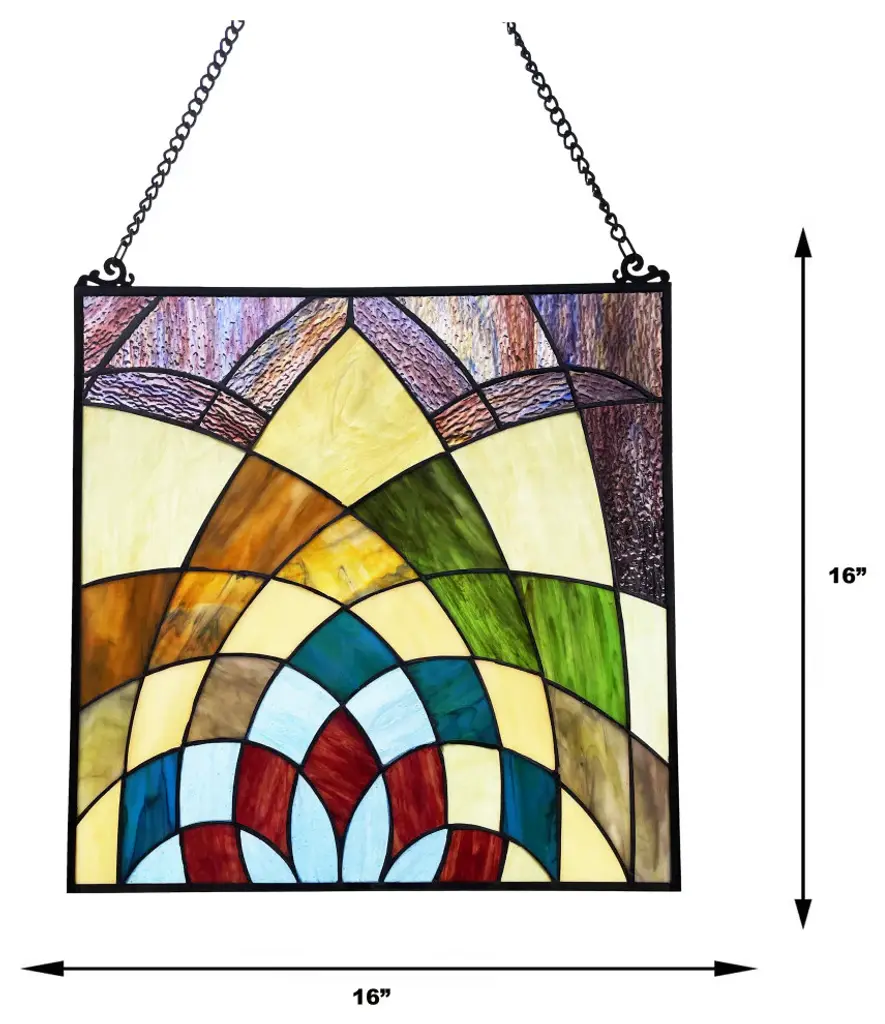 Kaleidoscope Geometric Stained Glass Window Panel 16" Tall