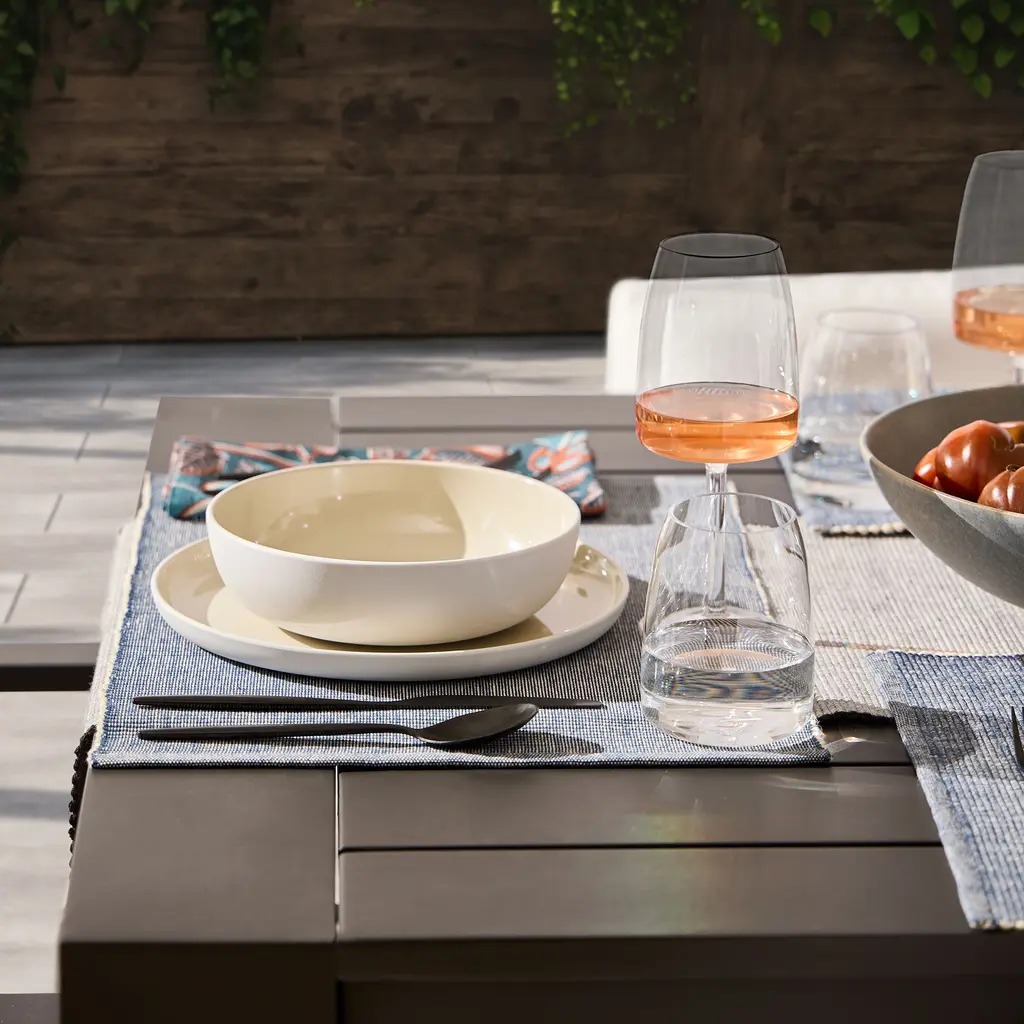 Designed for West Elm by Aaron Probyn. Textured matte outer finish for a rustic look. Outdoor safe melamine is perfect for daily meals. Melamine is dishwasher safe.