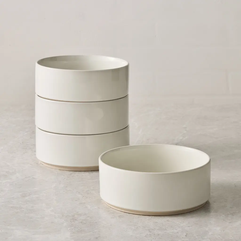 Aaron Probyn is known for minimal designs. Made of durable stoneware for everyday usage. Laid-back, elevated approach to serving condiments. They're microwave and dishwasher safe.