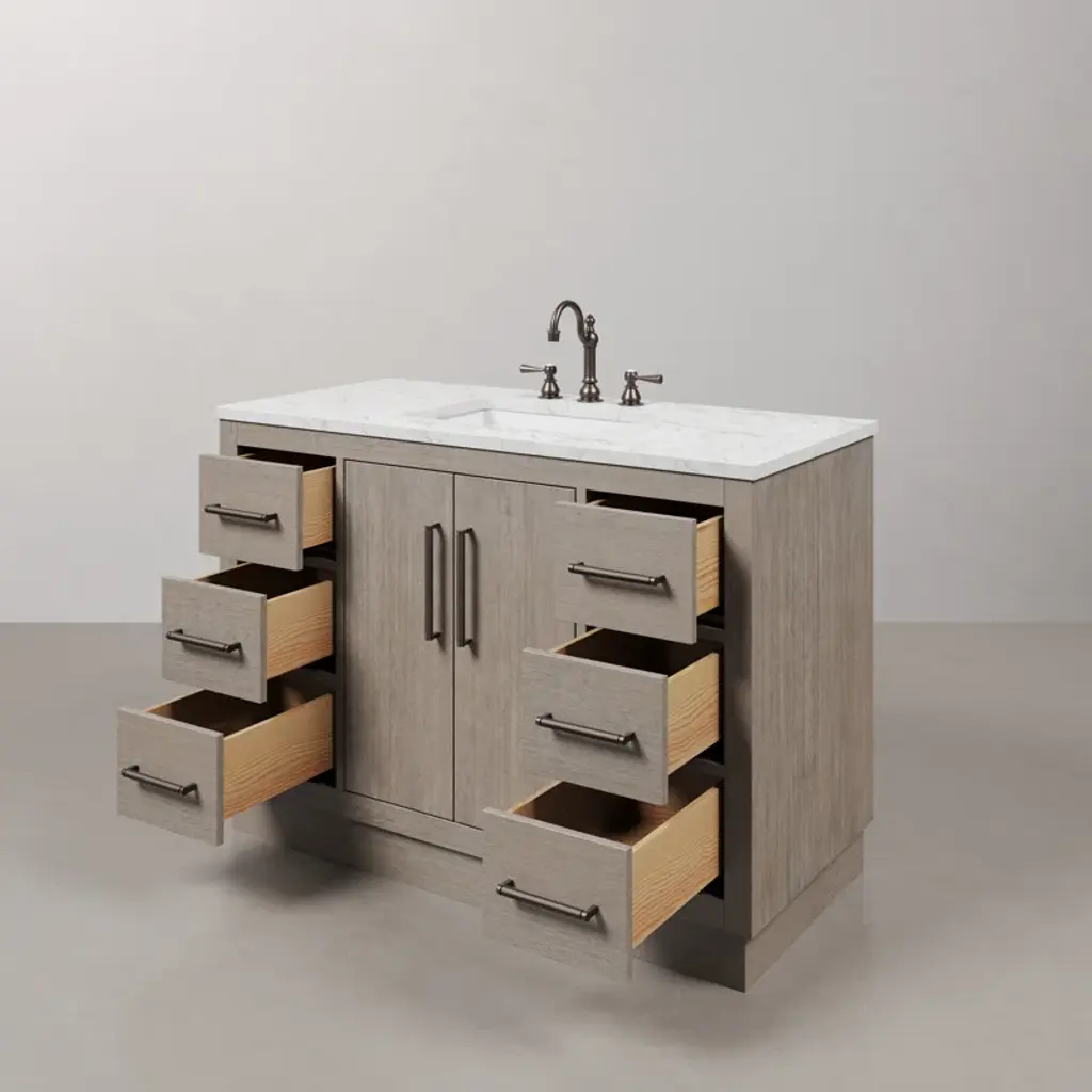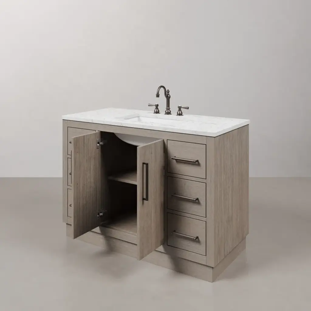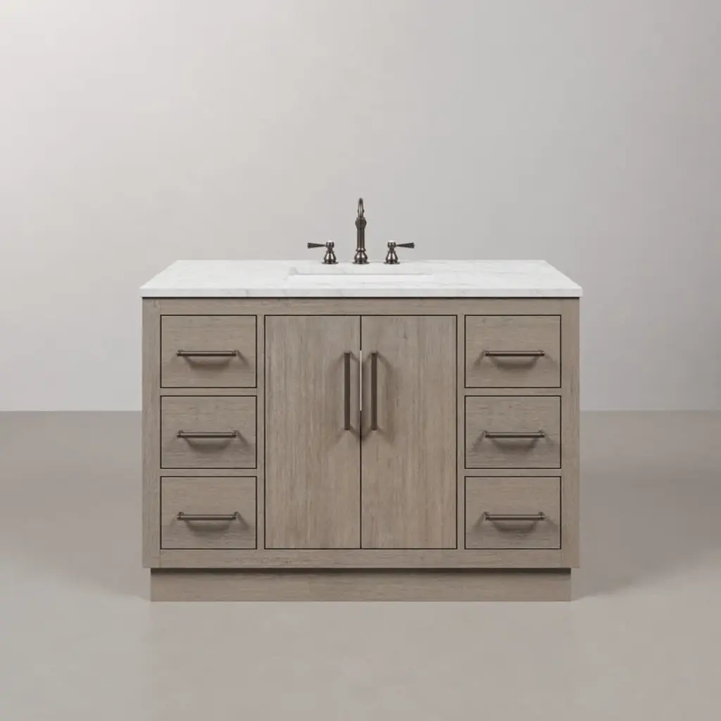 Kamila 48" Carrara White Marble Countertop Bath Vanity In Gray Oak With Faucet