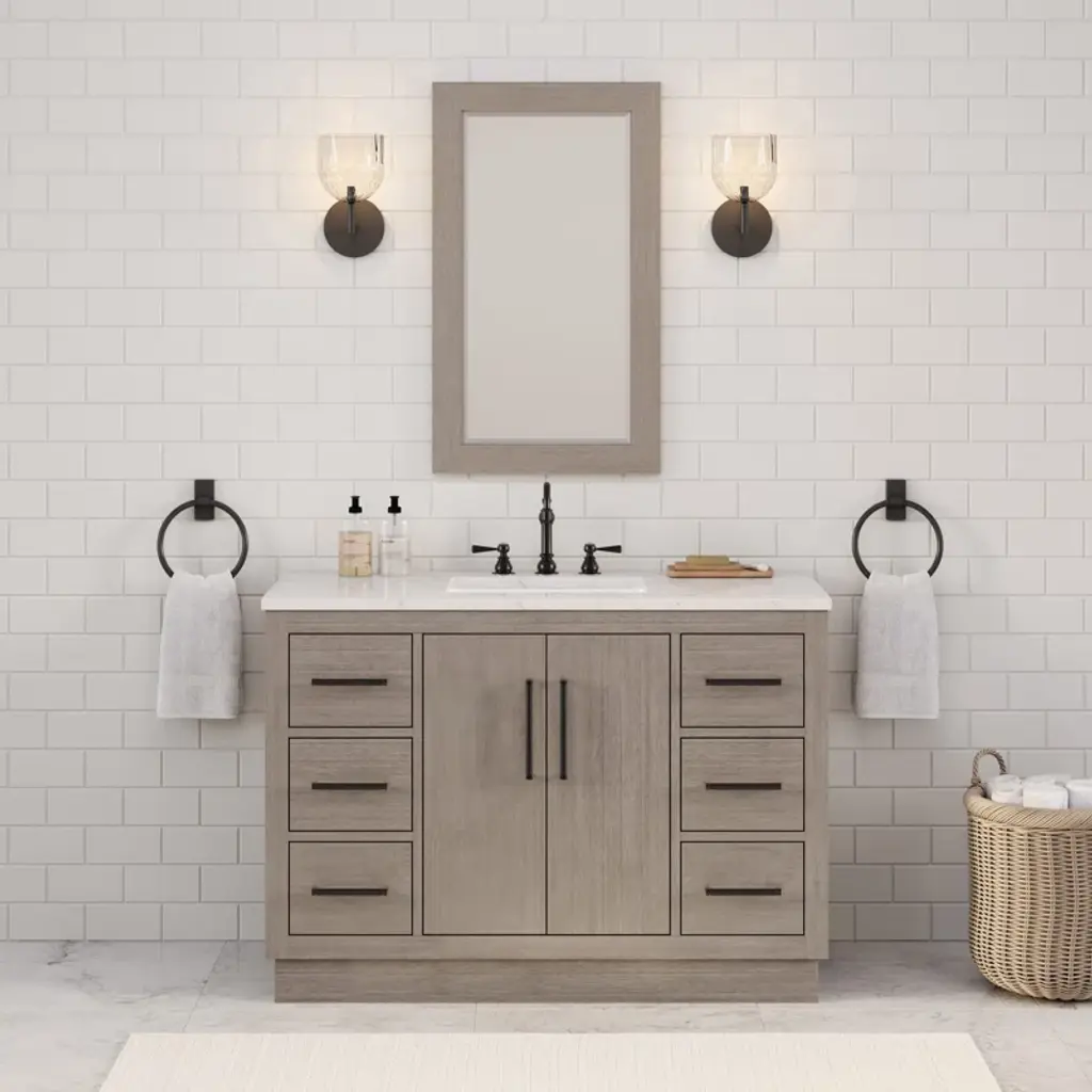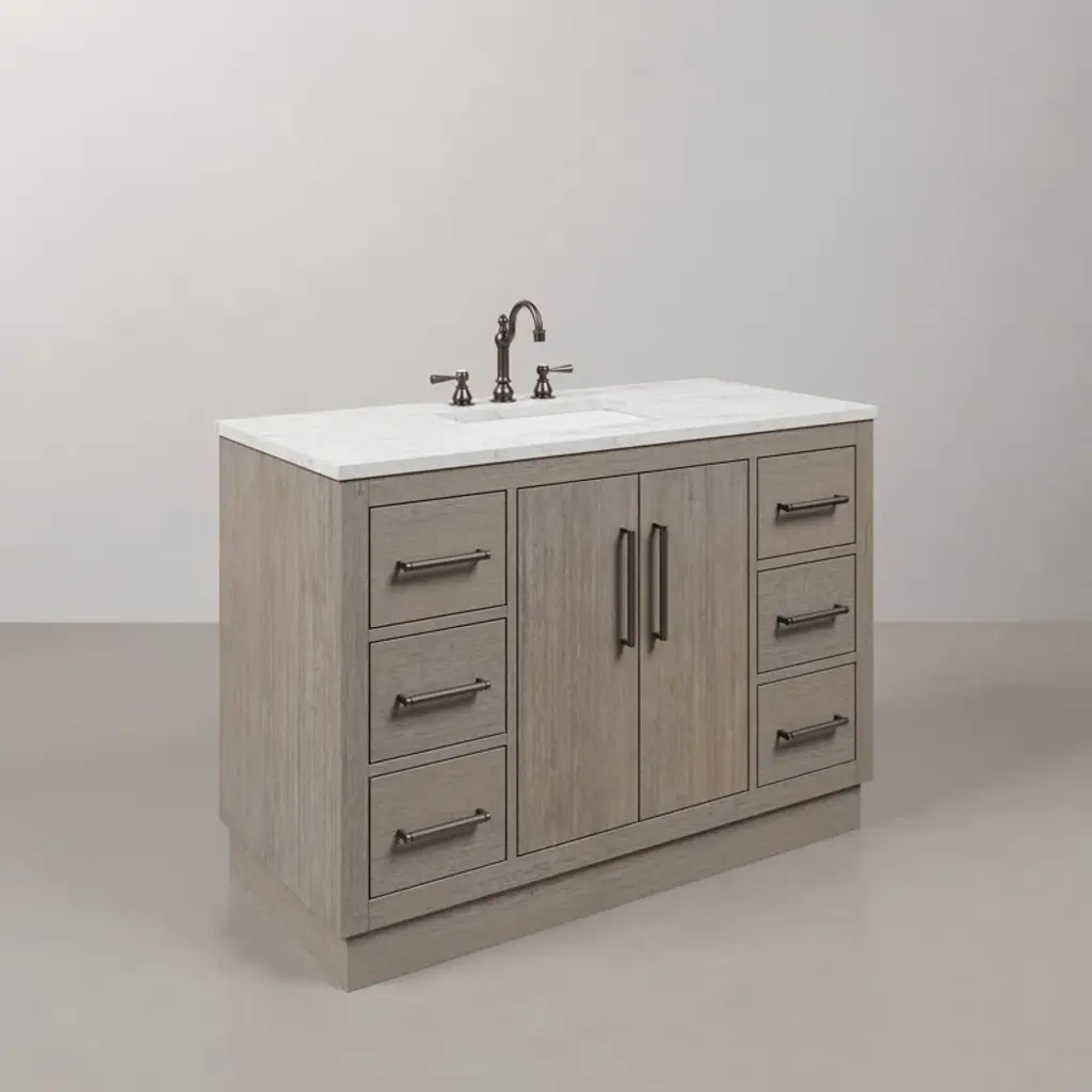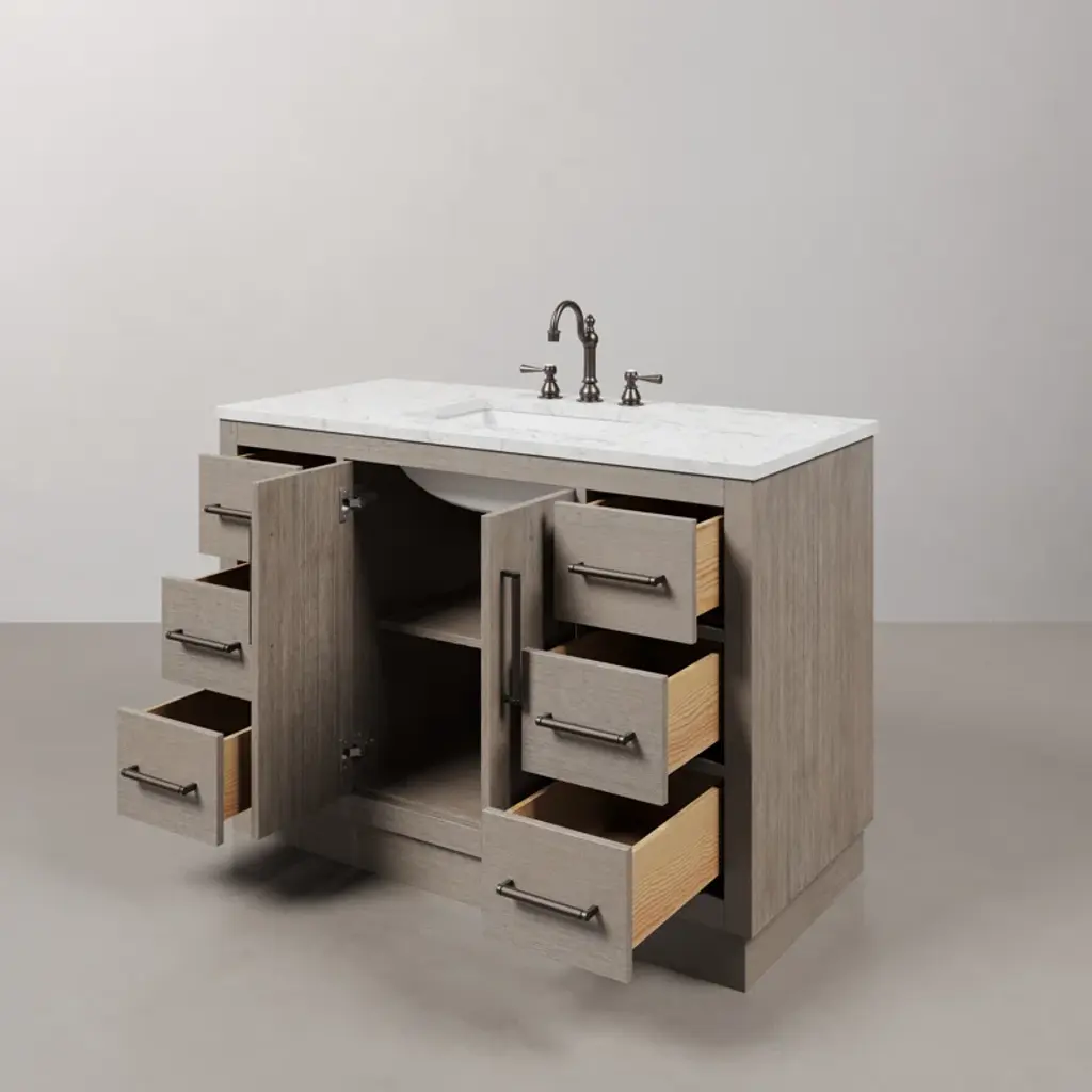 Kamila 48" Carrara White Marble Countertop Bath Vanity In Gray Oak With Faucet