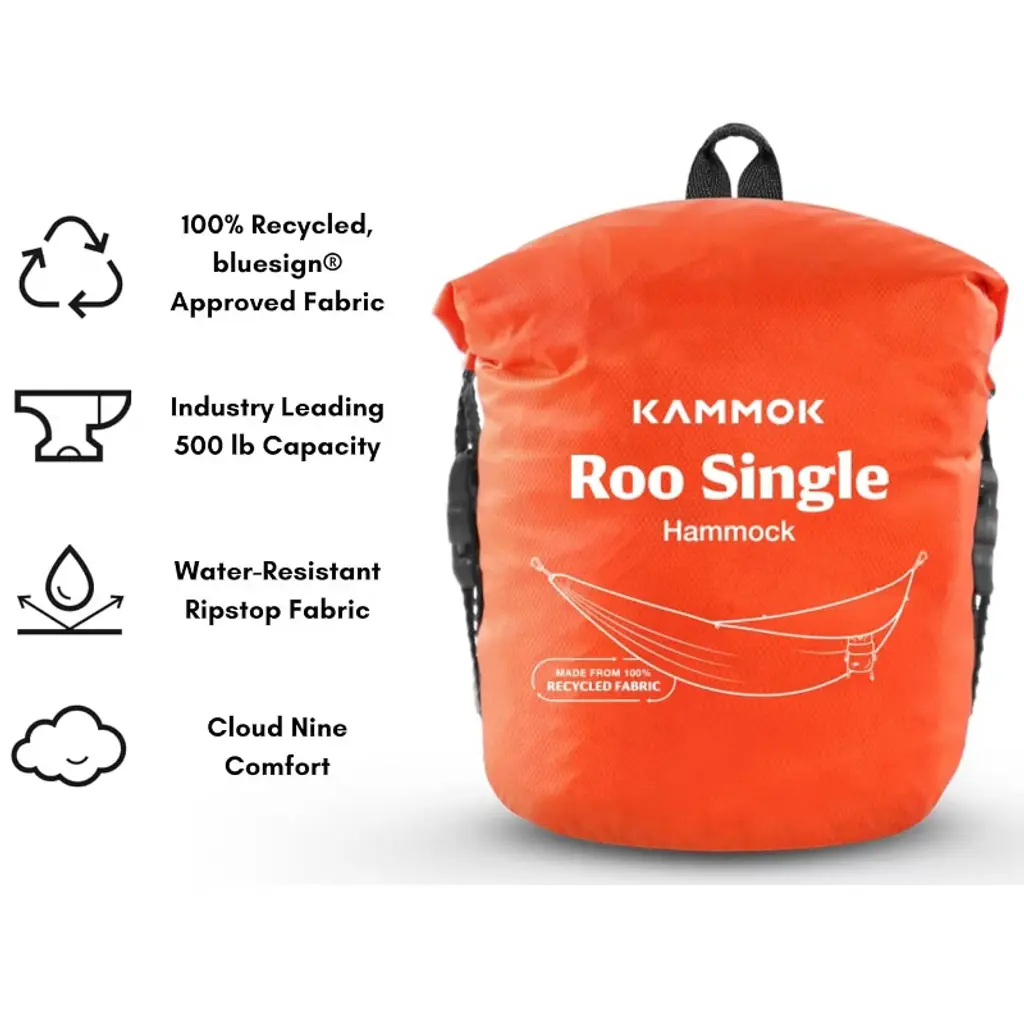 Kammok Roo Single Hammock With Stuff Sack | Waterproof Ripstop Nylon, Gear Loops | Lightweight For Camping And Backpacking, Ember Orange
