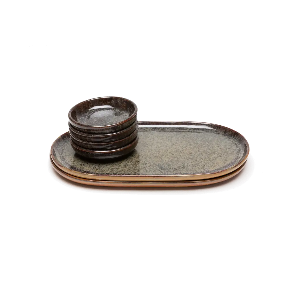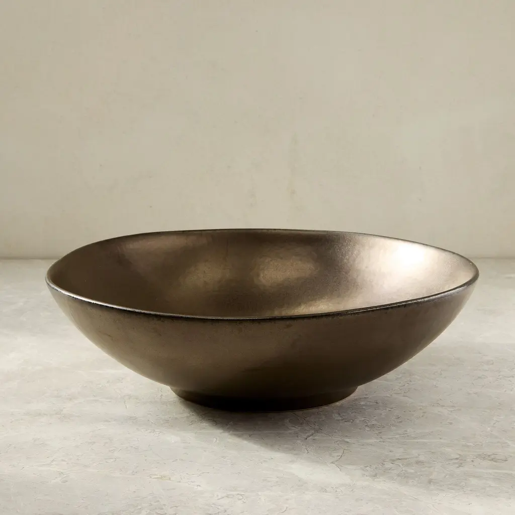 Designed just for us by Aaron Probyn. The metallic finish adds sleek, chic appeal to durable stoneware. An elevated collection of serveware essentials. They're microwave and dishwasher safe.