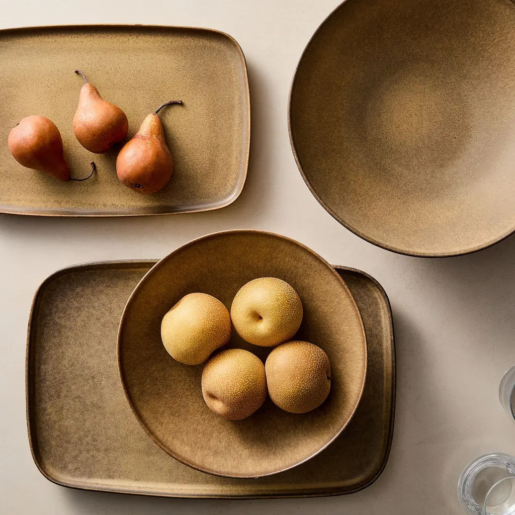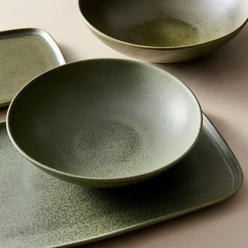 Designed just for us by Aaron Probyn. Made in Portugal from glazed stoneware. Variations in color and speckling make each one unique. They're dishwasher safe.