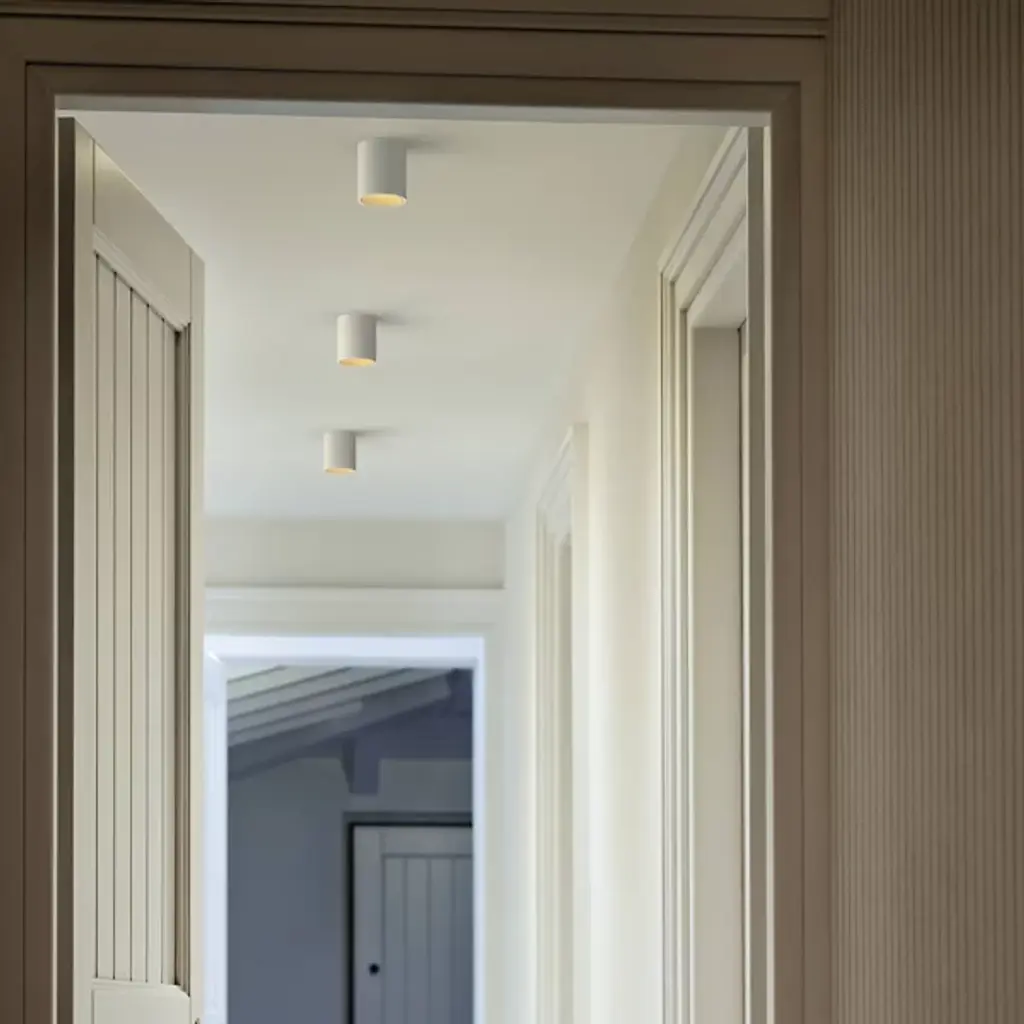 The Kap 80 LED Surface Round Mains Dimming Optic T24 JA8 from FLOS is a simple, cylindrical design that adds a casual contemporary appeal to inside ceilings. Each fixture is made to order in Spain, offering a smooth and subtle sense of functional luxury. The design incorporates the power source into its cylindrical metal body; it places a strong LED lamp inside the body as well, casting an expressive and energy-efficient glow below that matches reflected radiance with a range of beam spreads depending on the specific light expression needed.