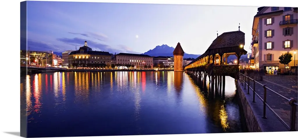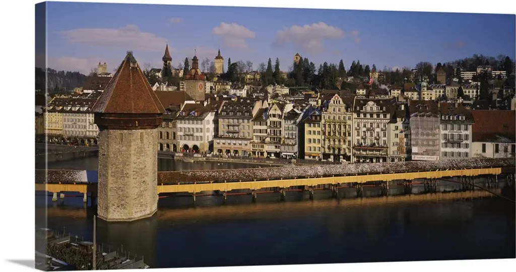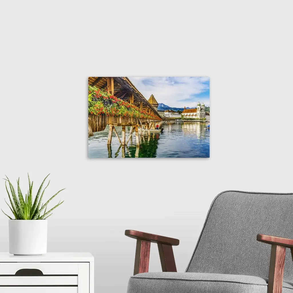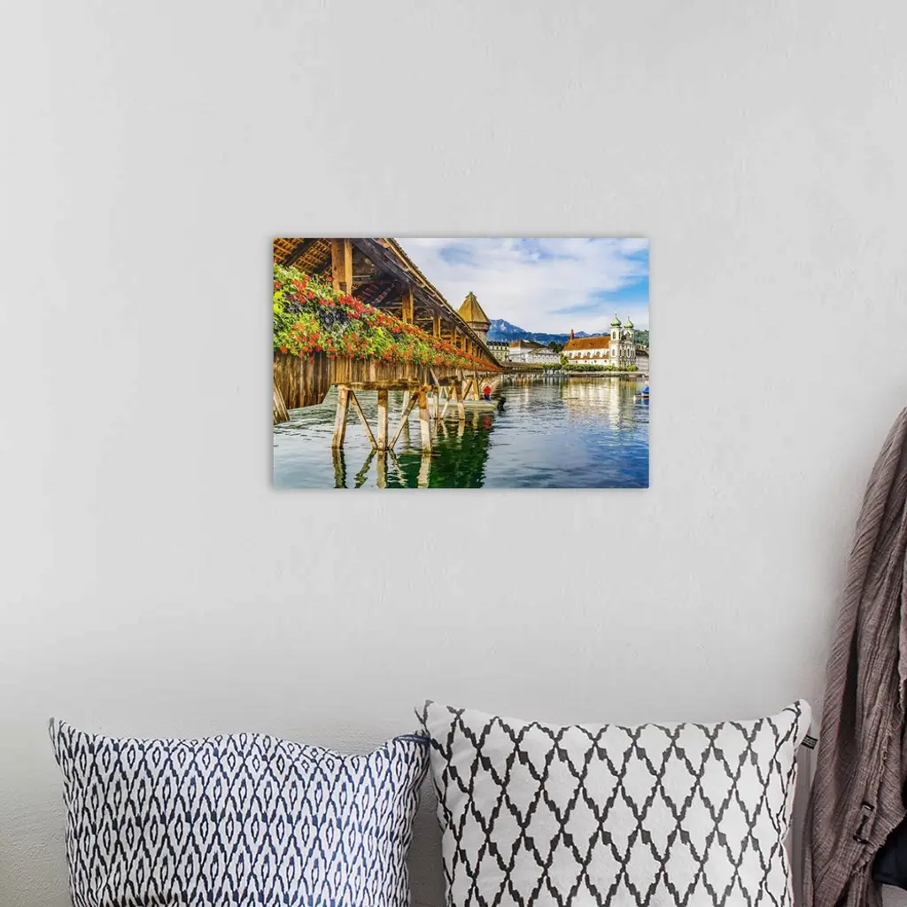 Kapellbrucke Jesuit Church Reflection, Lucerne, Switzerland, Built In 1365