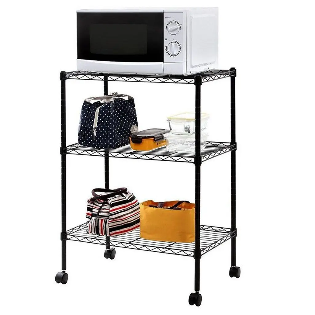 The 3-Layer Plastic Coated Iron Shelf with 1.5inch Plastic Wheels is perfect for organizing or displaying accessories, makeup products, tools, and more. With a multi-layer construction, it accommodates items in different sizes and shapes brilliantly. Open design allows you to quickly fetch the one you want. Made with high-grade iron with a plastic coating, it is tough, reliable, and durable. Simple modern design coordinates well with any home and shop decor style. Smooth wheels add to the ease of mobility. Click and order now.