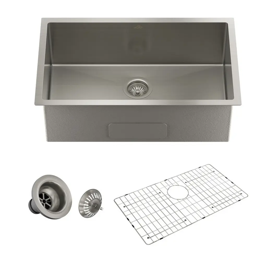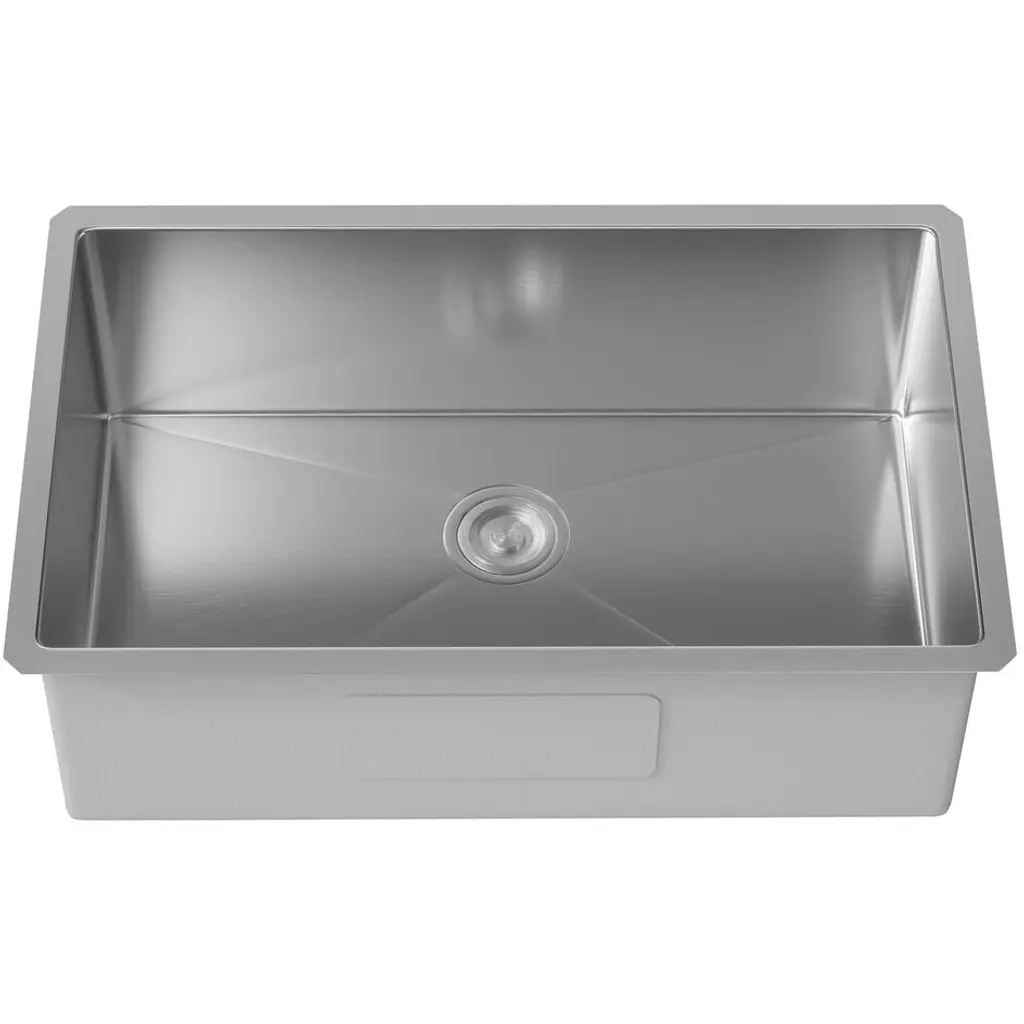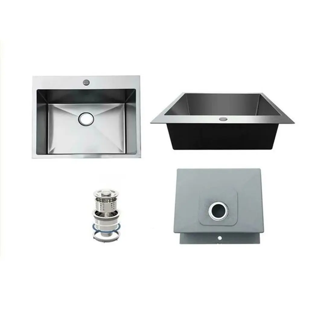This hand crafted 25 in. top mount kitchen sink has an easy to clean surface. The smooth brushed stainless-steel shows beautiful and amazing craftsmanship. The drain is located at the top-center, for easy water disposal when washing dishes and other utensils. Also, it's equipped with a drain strainer kit for catching trash that might get into your drain. This is perfect for creating extra space to continue additional prepping or letting utensils dry.