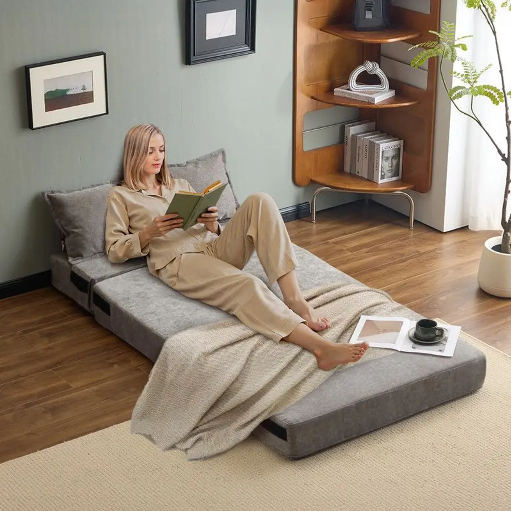 This sofa bed comes with a metal frame, enabling the sleeper bed to be used freely and independently in any setting without requiring support against a wall. Can be used in both indoor and outdoor like an outdoor movie or camping