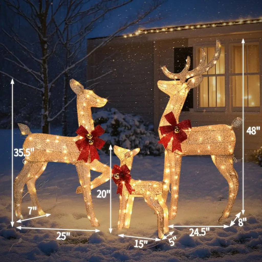 Karl Home 3Pcs Reindeer Family Christmas Decoration With Led Lights