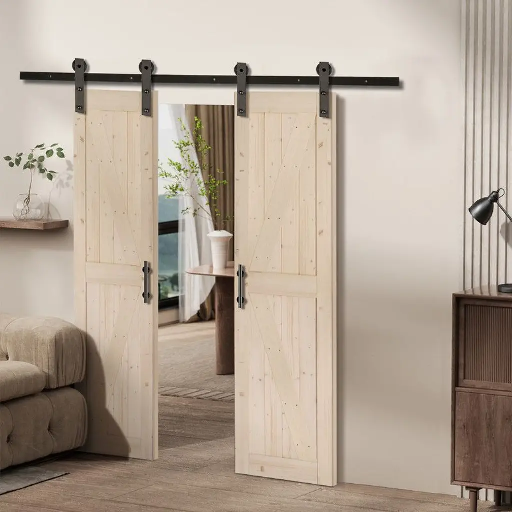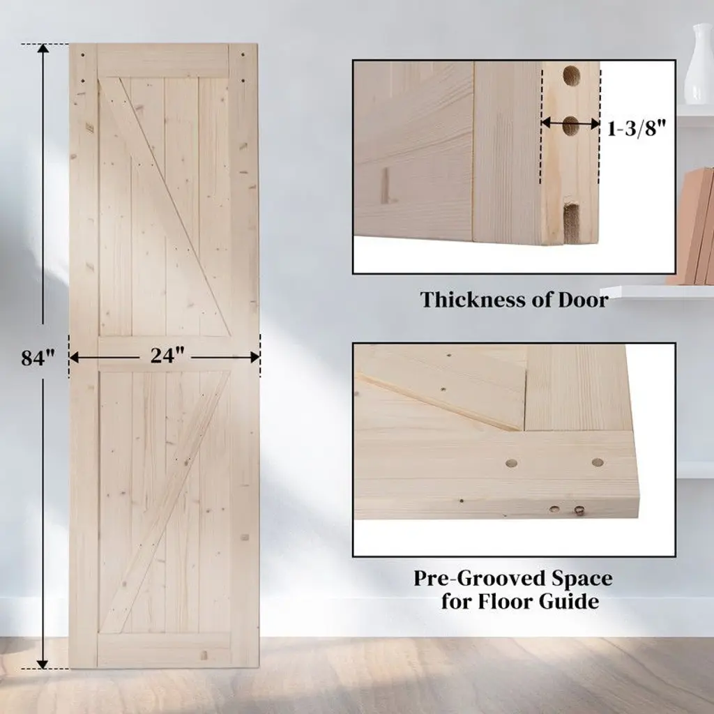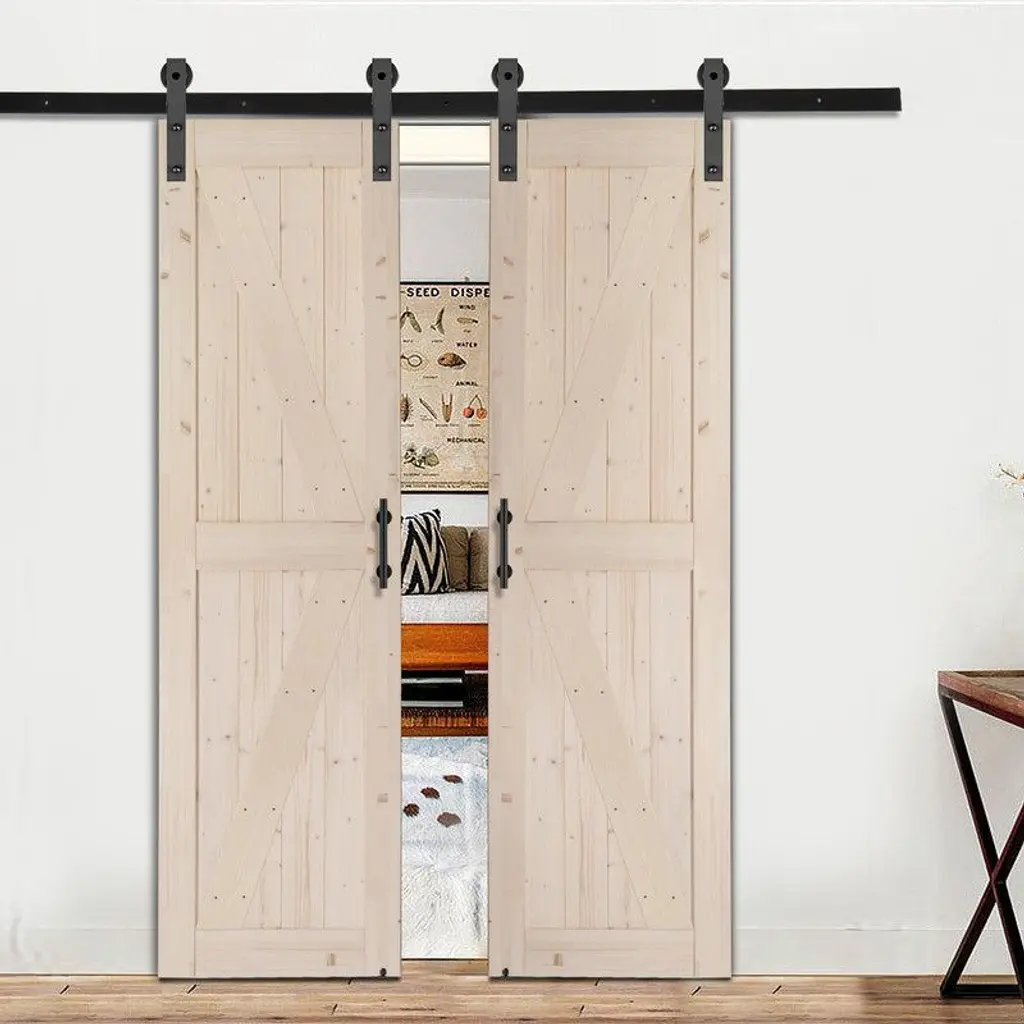 This barn door using natural spruce wood as raw materials, which is more environmentally friendly, healthy and comfortable. The wood grain is clear, natural and beautiful. Natural woody smell, strong sturdy and not easy to crack, with good corrosion resistance, durability, sound insulation, heat insulation and deodorization.