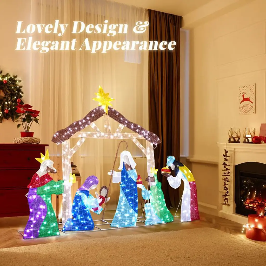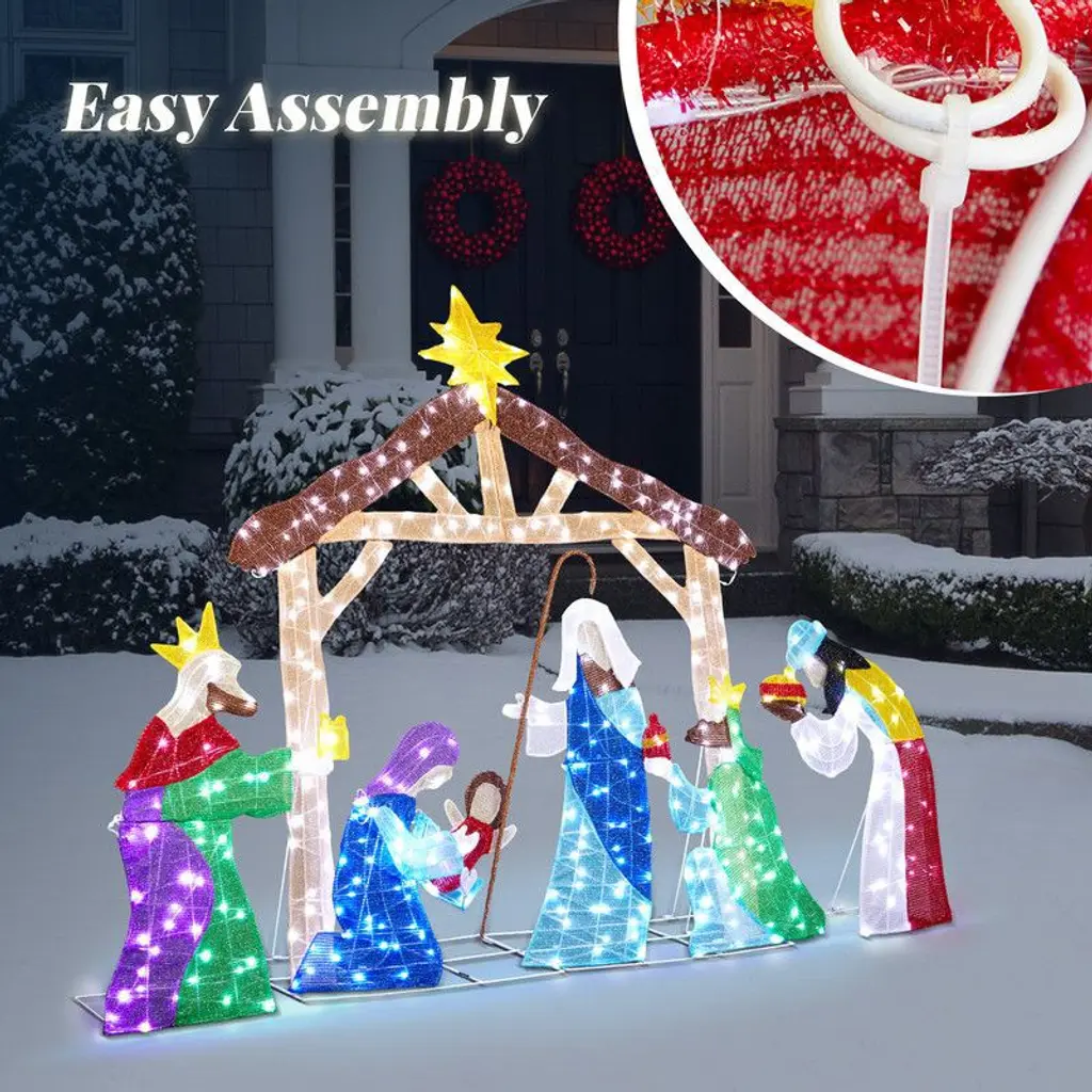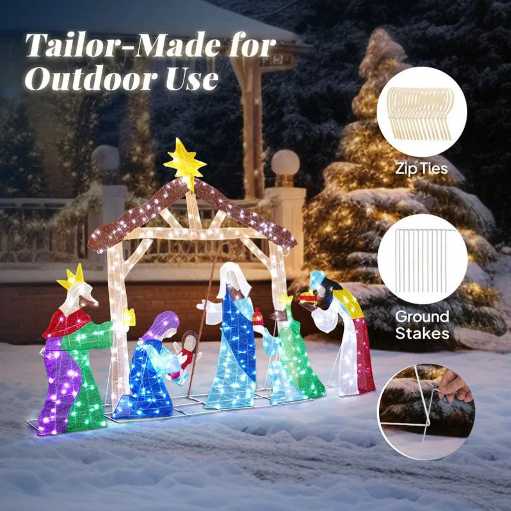 Create a heartwarming display this holiday season with our stunning lighted outdoor nativity scene. Perfect for bringing a touch of festive spirit to your yard or garden, this beautiful decoration captures the true essence of Christmas. With its durable and weather-resistant design, it's built to withstand the elements while providing a warm and welcoming atmosphere. Easy to assemble and store, this nativity scene is ideal for both indoor and outdoor spaces, making it a timeless addition to your holiday décor year after year.