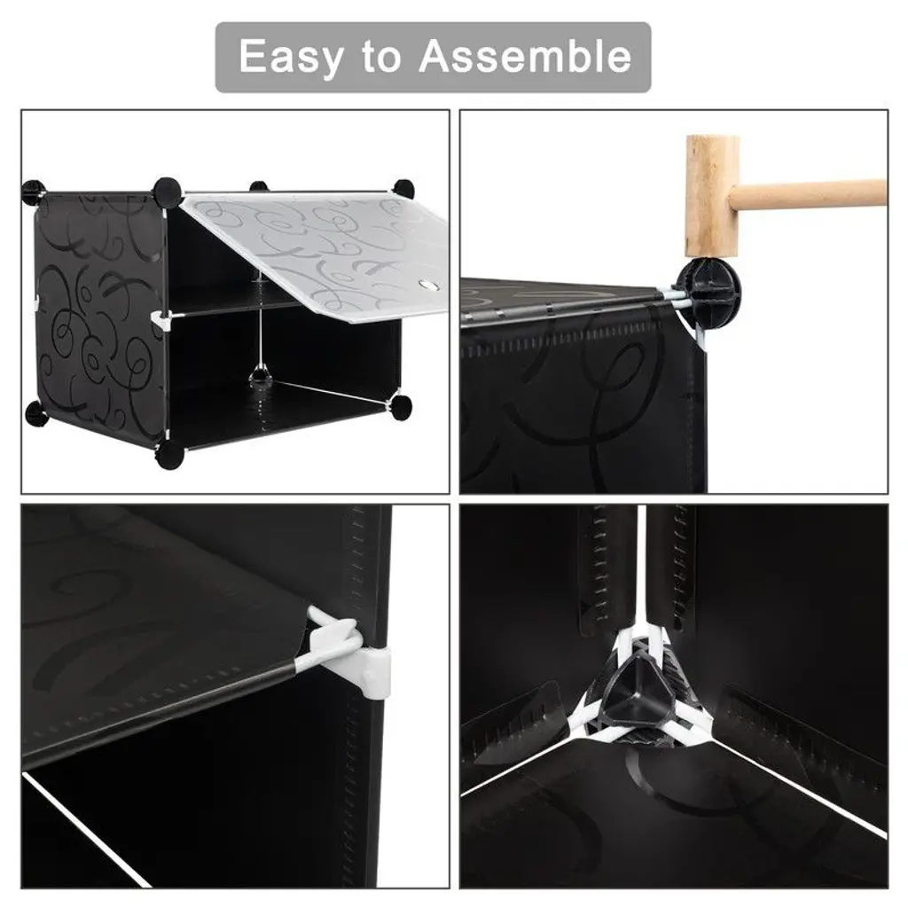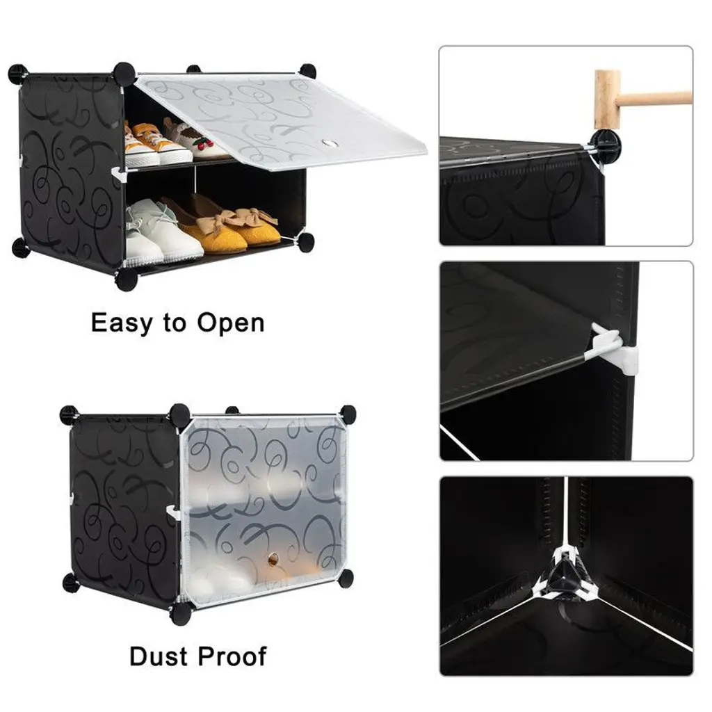 The shoe organizer has 18 large cubes, each of which can be divided into two, so there are 36 small cubes. The white & black design cheers up the style of the cabinet with a black and white curly pattern. It can keep all kinds of shoes well-organized, make your house tidy and comfortable, and give your visitors a good impression. Besides, you can store not only your shoes but also your clothes, books, CDs, children's toys, etc.