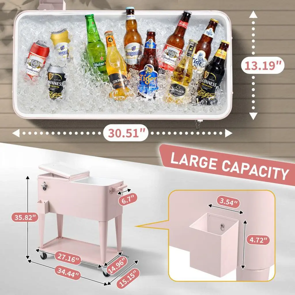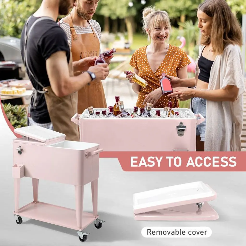 Karl Home 80 Qt Pink Patio Cooler Cart