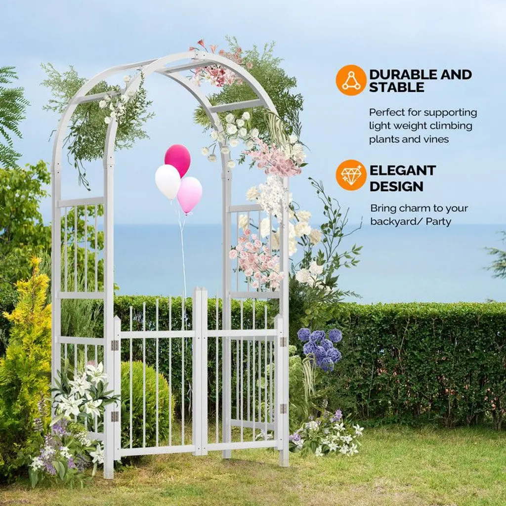 The PVC arch is perfect for climbing plants and vines to grow which makes a timeless addition to your garden or courtyard. Made of premium weather-resistant vinyl and maintenance free. All of our products are crafted from the highest quality materials using state-of-the-art equipment. We strive to create products that are long lasting, reliable, and presentable. Designed with 2 gates, which is convenient and artistic.