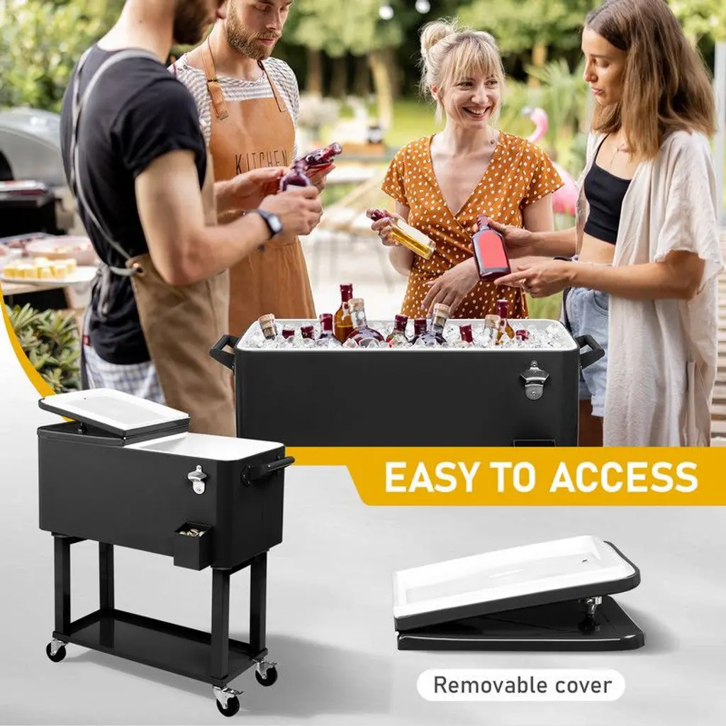 Karl Home Black Detachable 80 Qt. Outdoor Rolling Cooler Cart